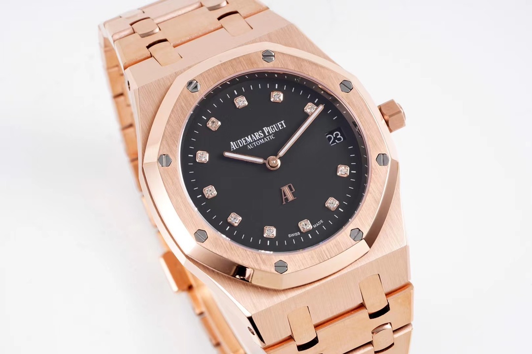 | Audemars Piguet Royal Oak 39mm Black Diamond Dial Rose Gold Bezel 15207OR.OO.1240OR.01 | |