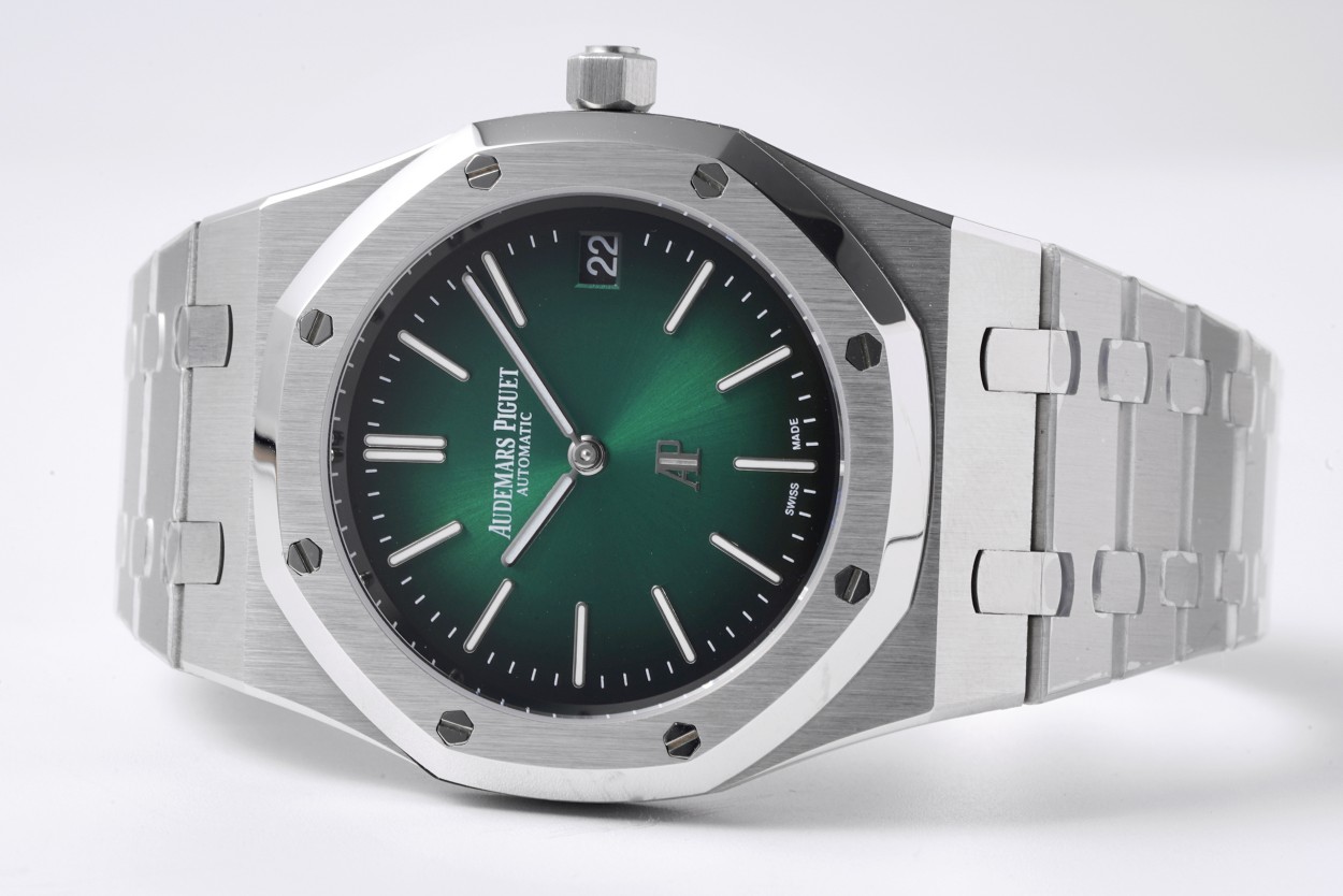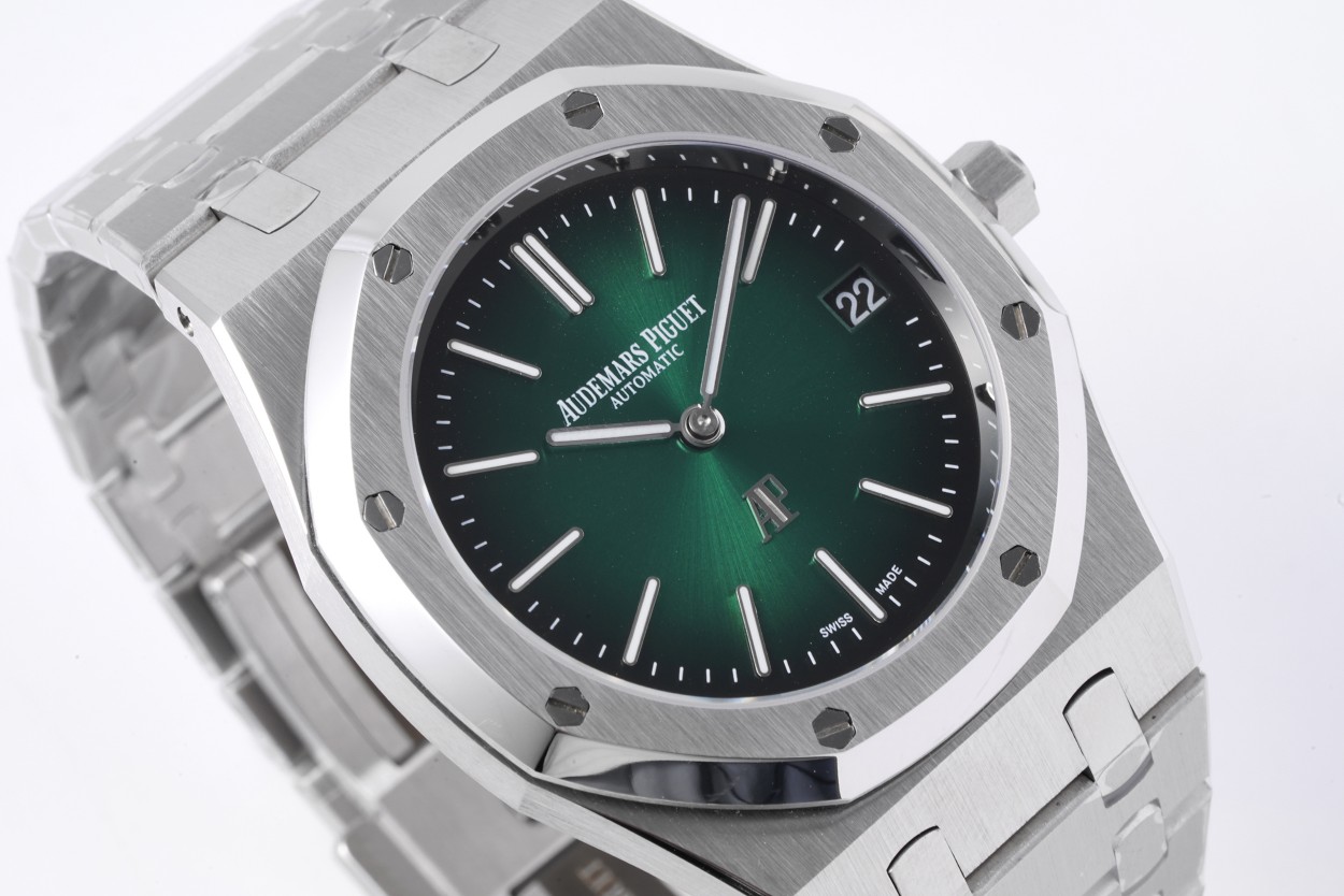 | Audemars Piguet Royal Oak 39mm Green Dial Platinum Bezel 15202PT.OO.1240PT.01 | |