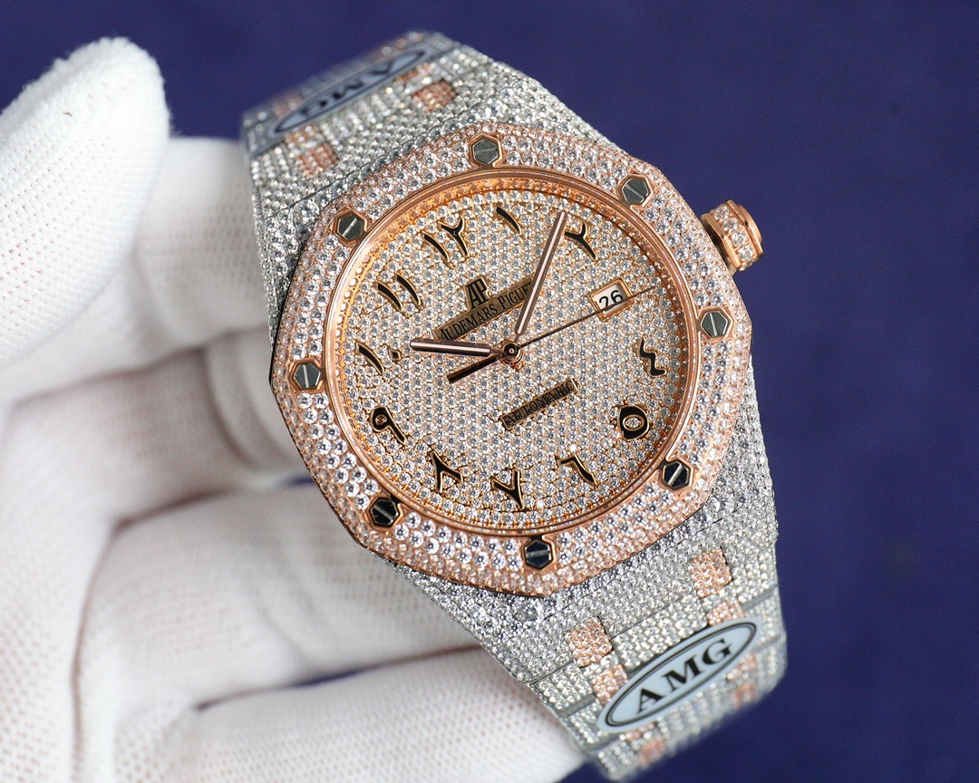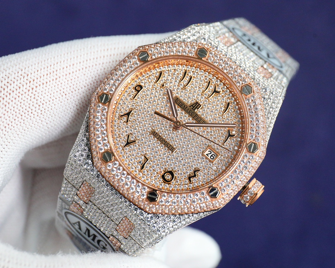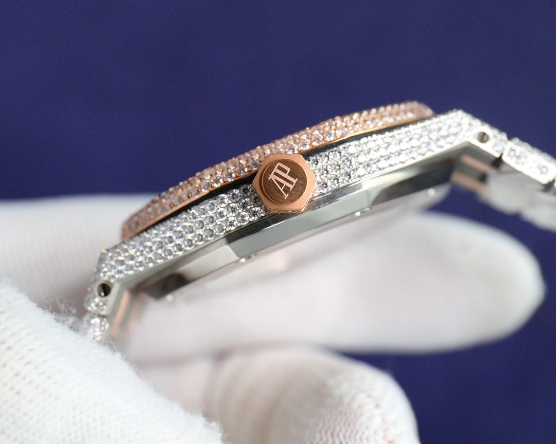 | Audemars Piguet Royal Oak 41mm Full Diamond Dial Rose Gold & Platinum Arabia 15400 | |