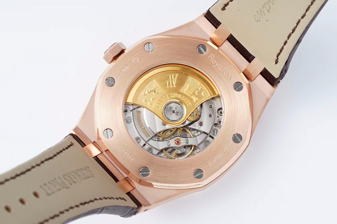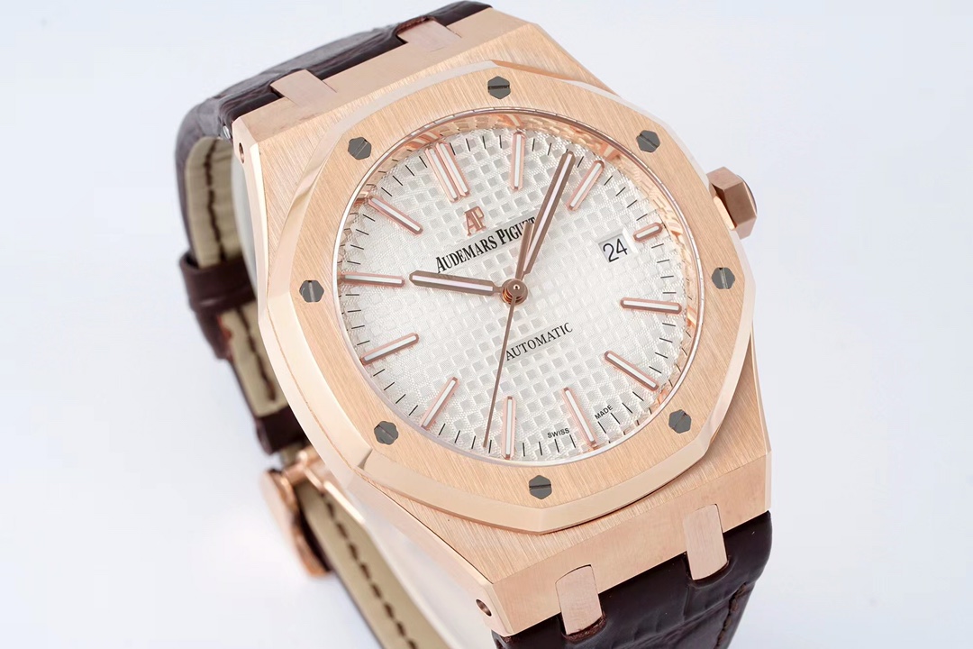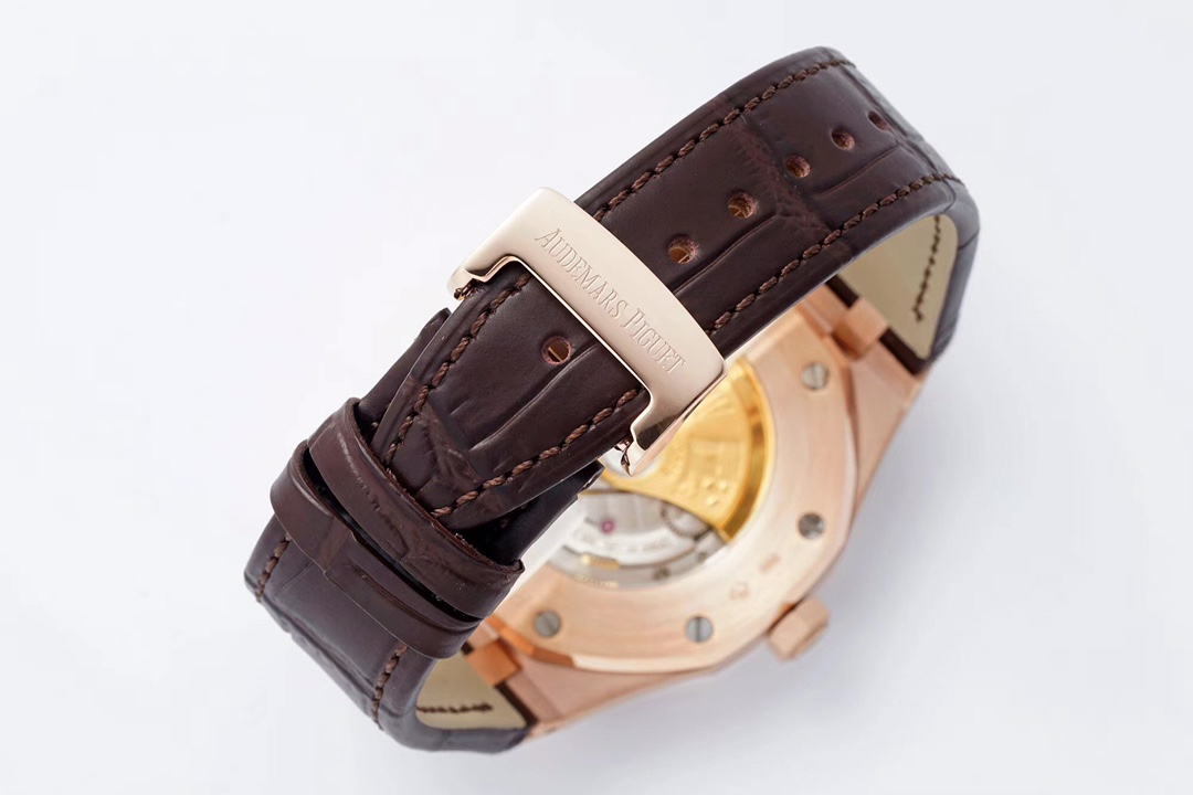 | Audemars Piguet Royal Oak 41mm Silver White Dial Rose Gold Bezel Brown Leather 15400OR.OO.D088CR.01 | |