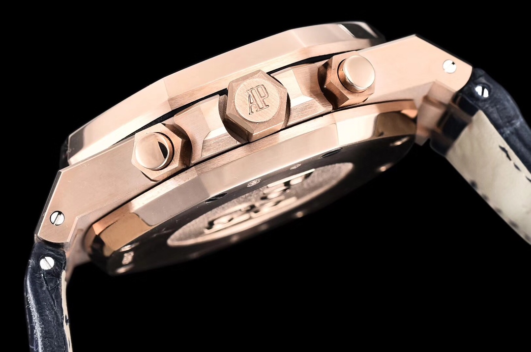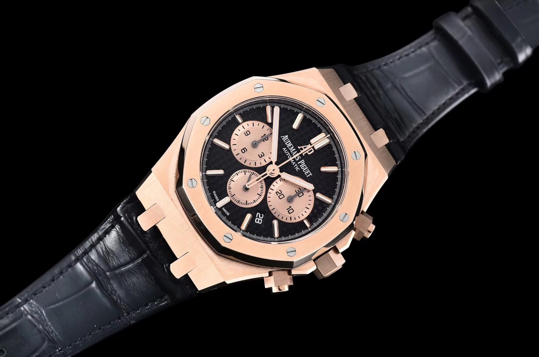 | Audemars Piguet Royal Oak Chronograph 41mm Black Dial Rose Gold Bezel Black Crocodile Strap 26331 | |