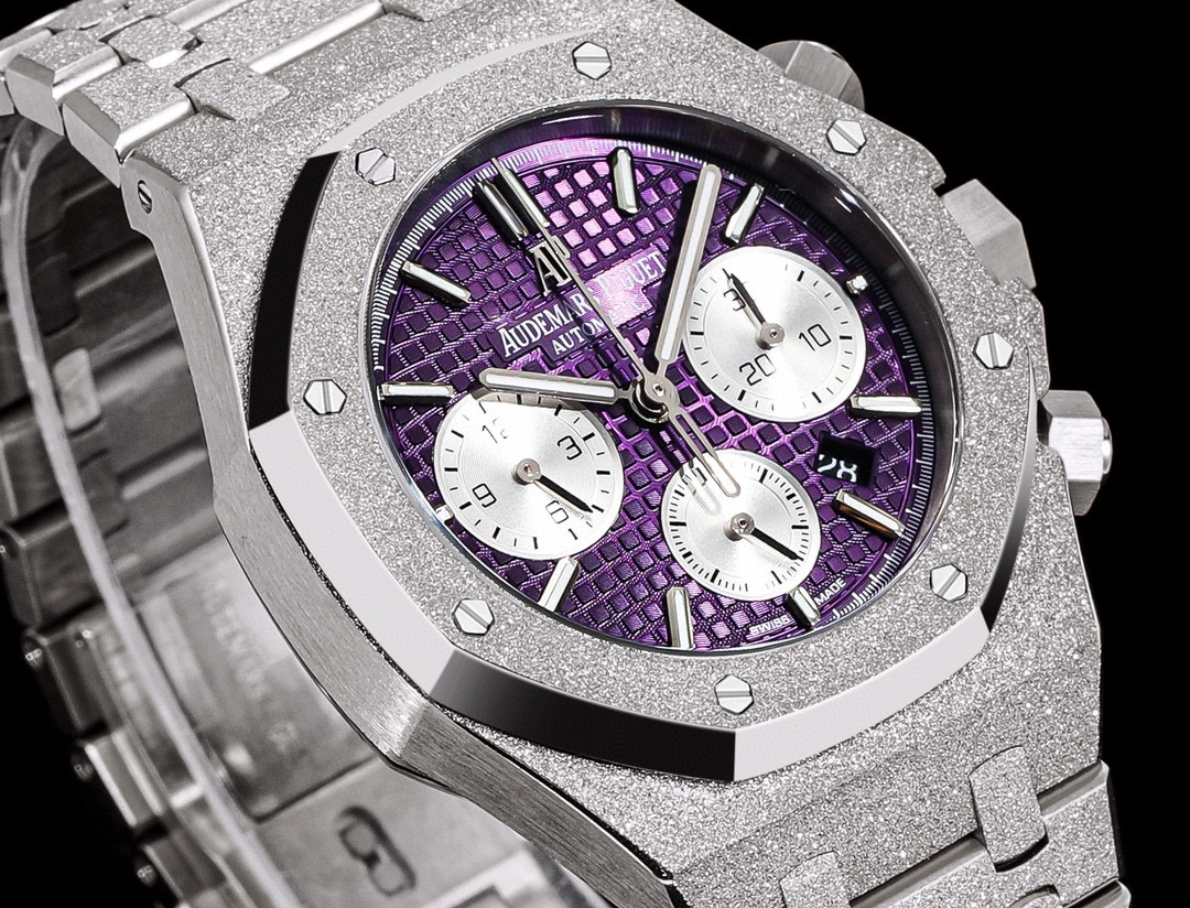 | Audemars Piguet Royal Oak Chronograph 41mm Purple Dial Frost Platinum Bezel 26331BC.GG.1224BC.01 | |