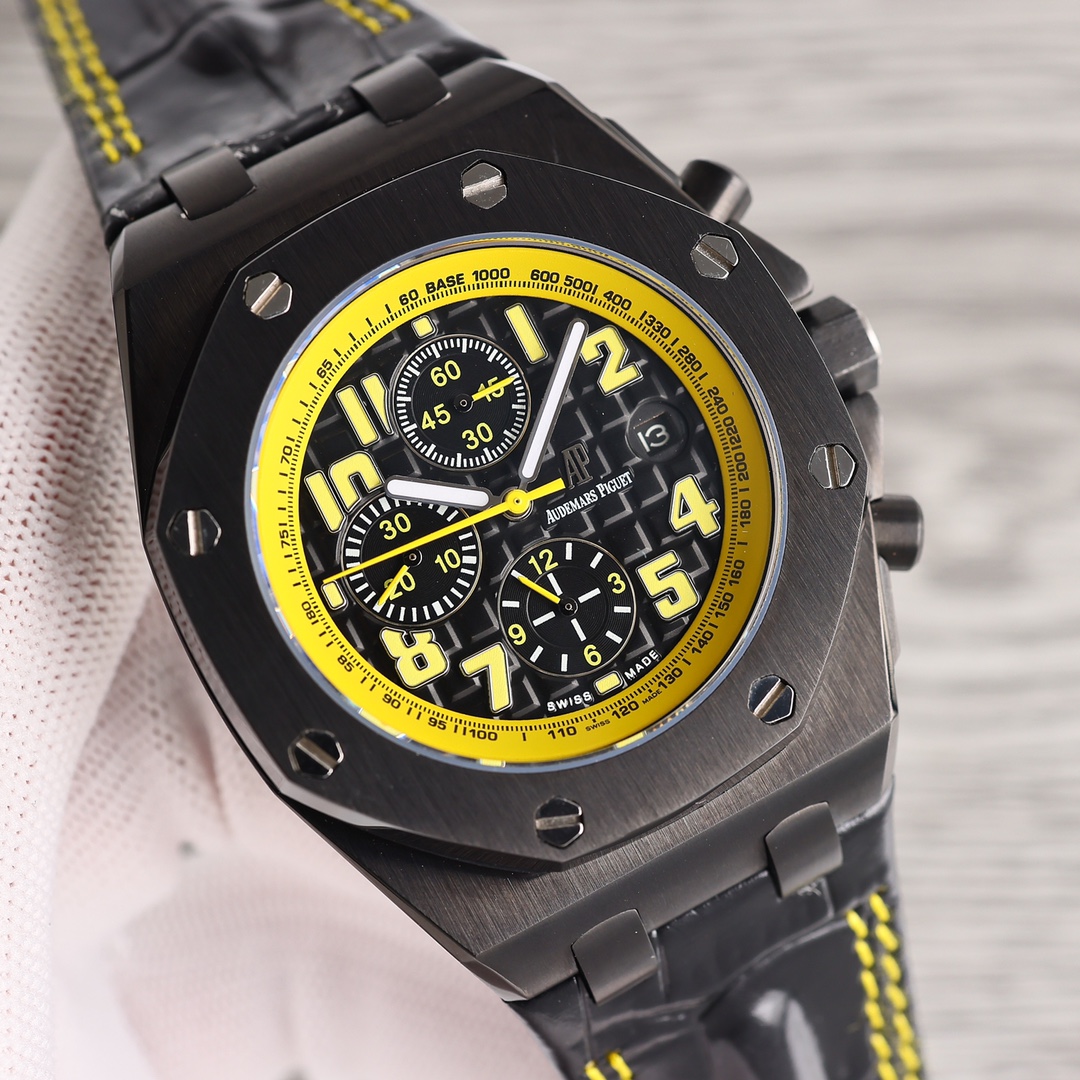 | Audemars Piguet Royal Oak Offshore Bumblebee 42mm Black Yellow Dial Black Bezel Black Leather 26176FO.OO.D101CR.02 | |