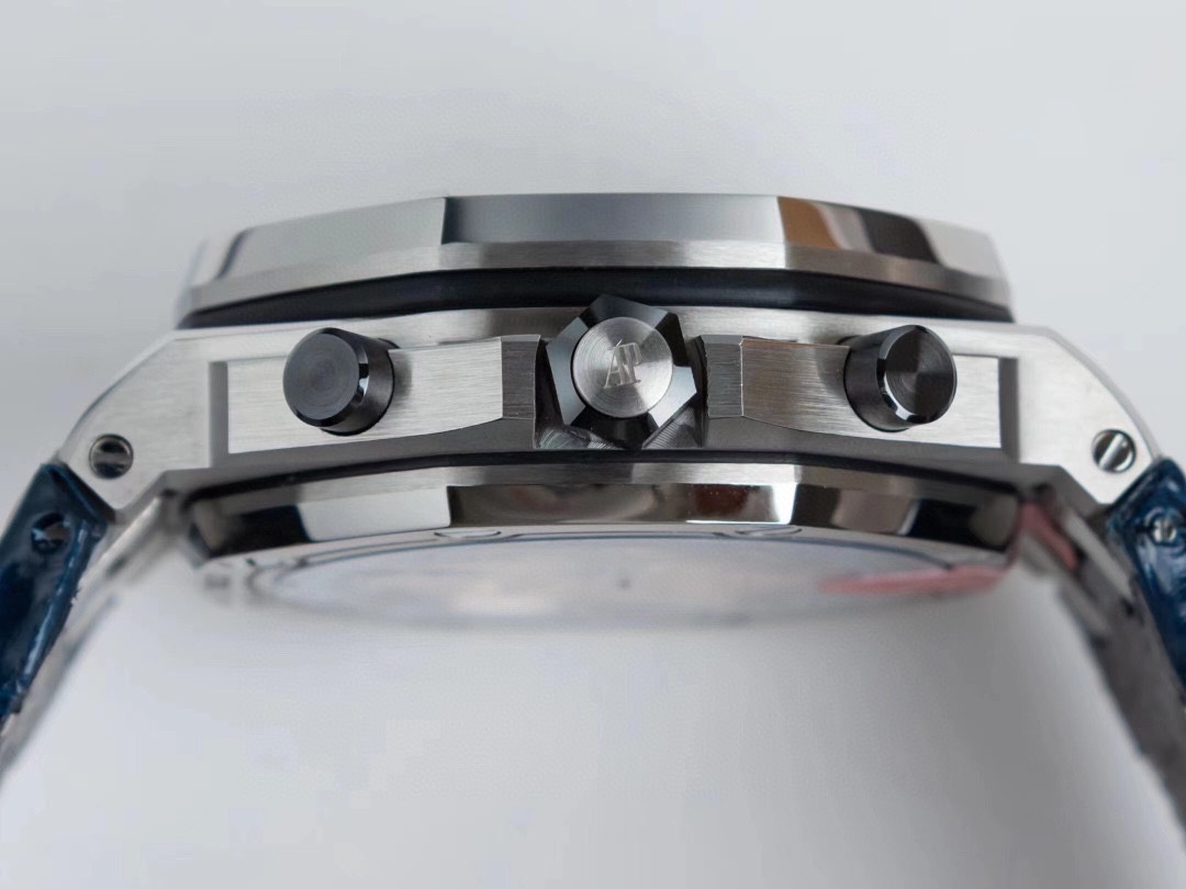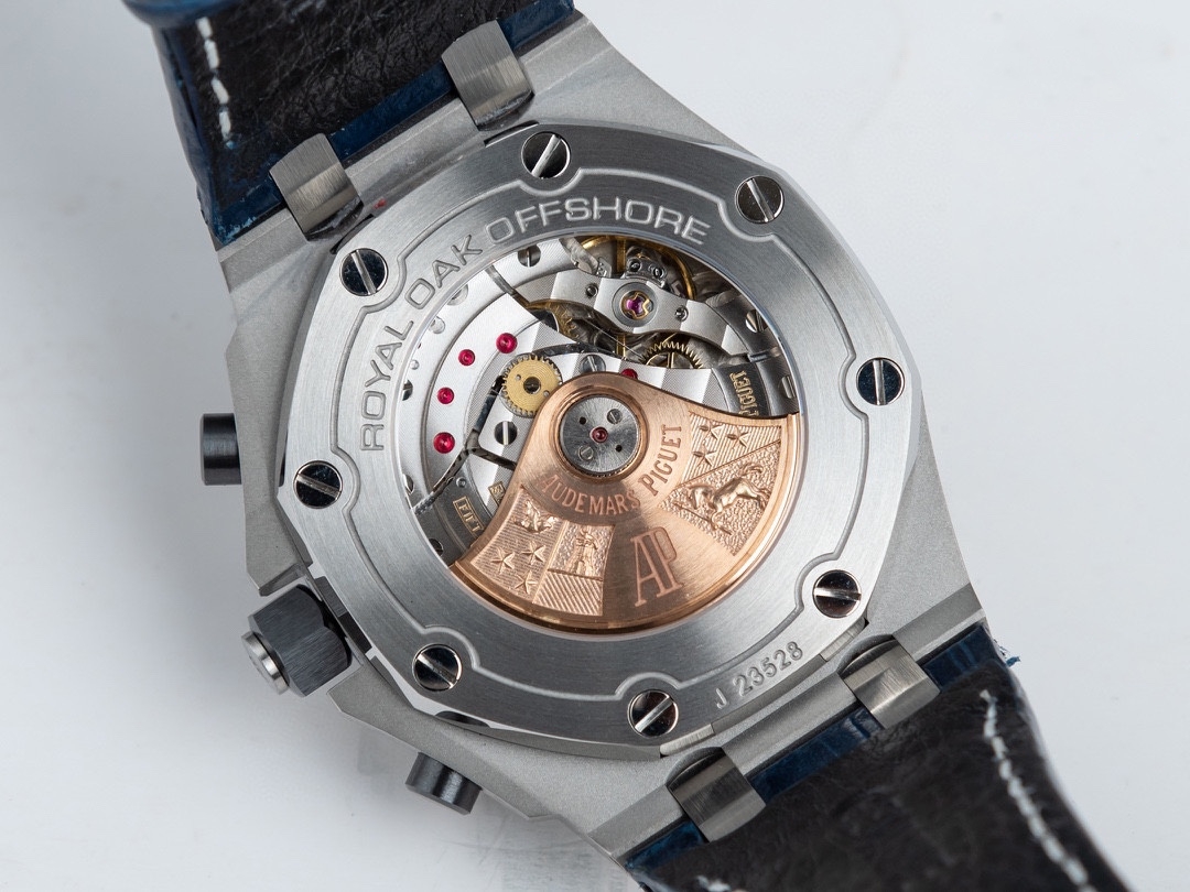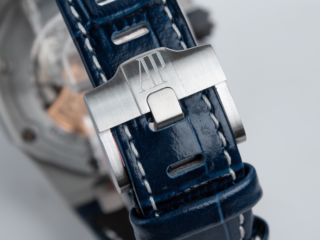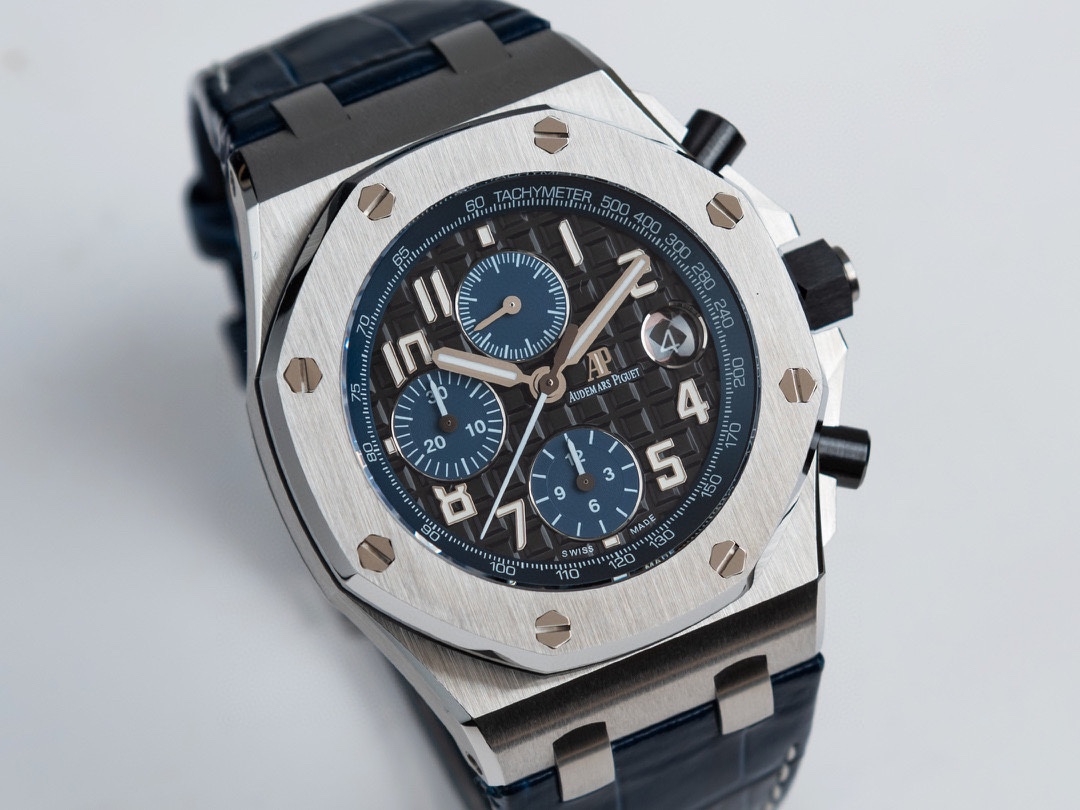 Audemars Piguet Royal Oak Offshore Chronograph 42mm Black Blue Dial Steel Bezel Blue Leather 26470ST.OO.A028CR.01