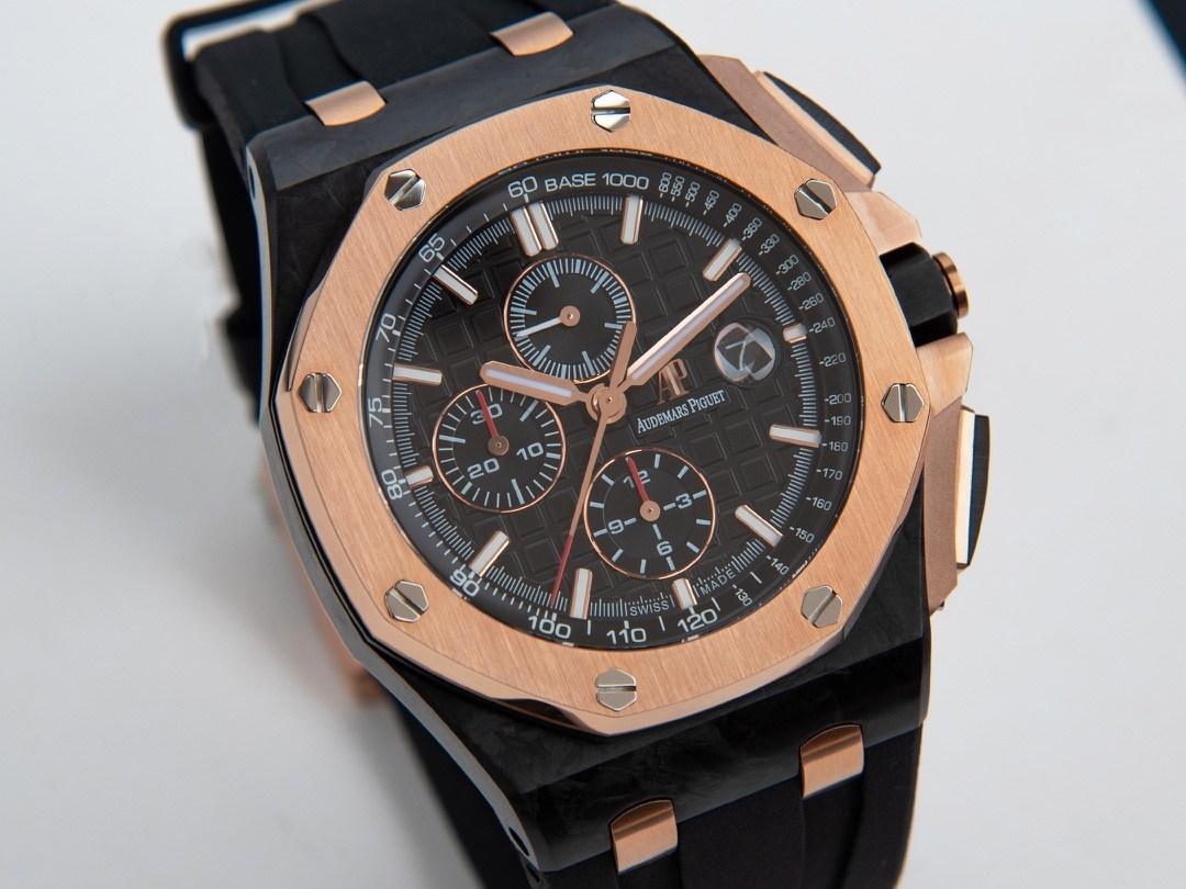 | Audemars Piguet Royal Oak Offshore Chronograph 44mm Black Dial Rose Gold Bezel Black Rubber 26406FR.00.002CA.01 | |