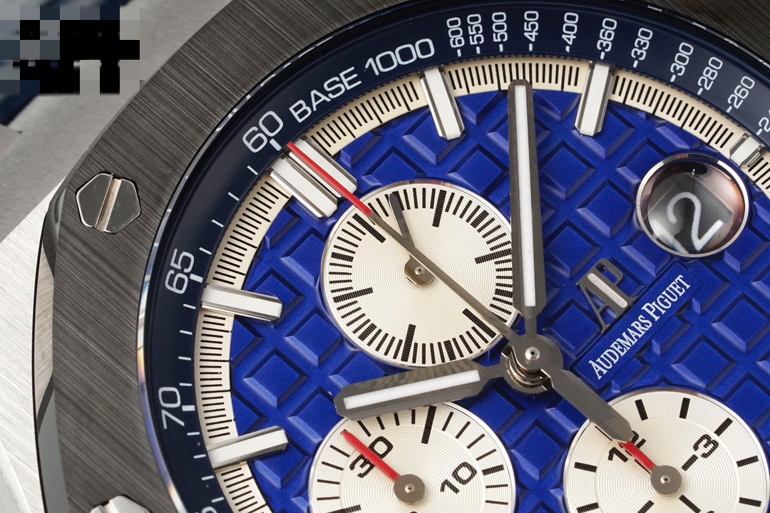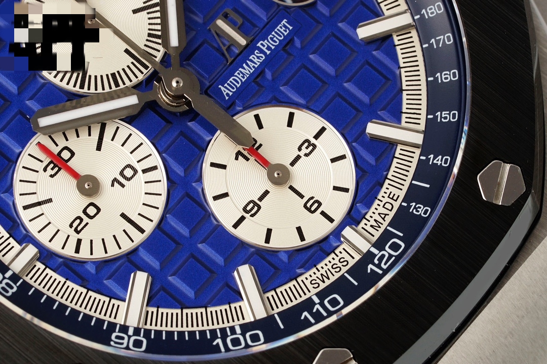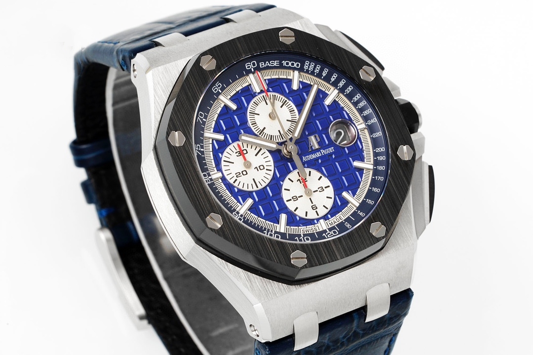 | Audemars Piguet Royal Oak Offshore Chronograph 44mm Blue Dial Black Bezel Blue Leather 26401PO.OO.A018CR.01 | |