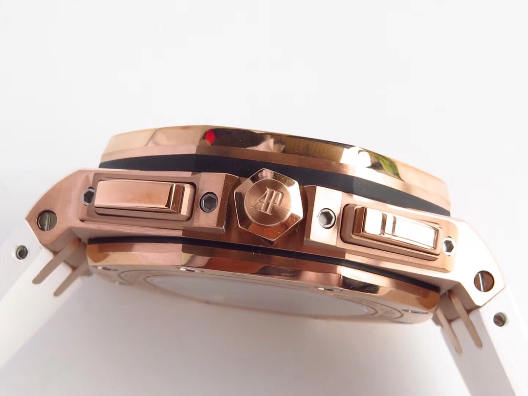 | Audemars Piguet Royal Oak Offshore Chronograph 44mm White Blue Dial Rose Gold Bezel Rubber 26408OR.OO.A010CA.01 | |