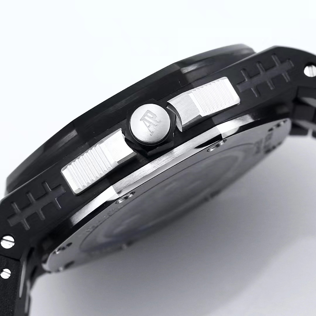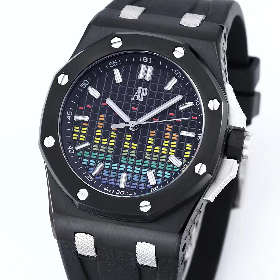 | Audemars Piguet Royale Oak Offshore 43mm Black Music Dial Black Ceramic Steel Bezel Black Rubber 15600CE.OO.A002CA.01 | |