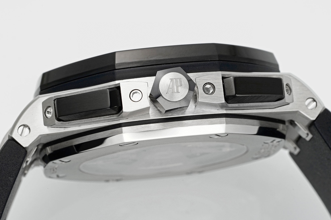 | Audemars Piguet Royale Oak Offshore Chronograph 43mm Black Silver Dial Black Steel Bezel Black Rubber 26420SO.OO.A002CA.01 | |