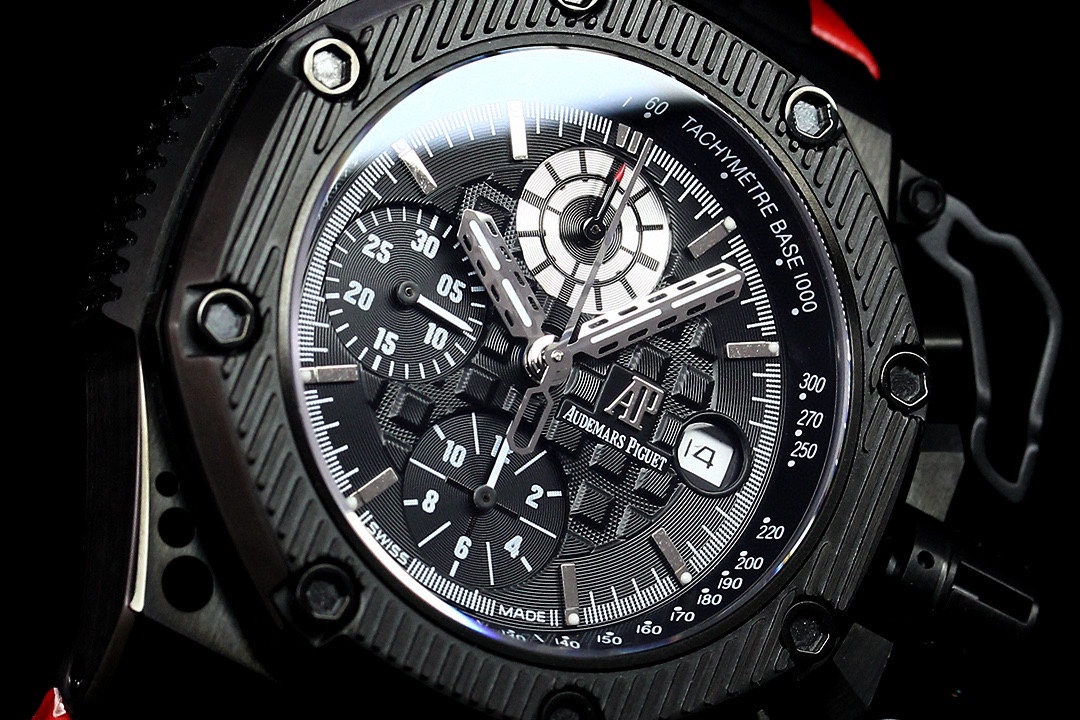 | Audemars Piguet Royale Oak Offshore Survivor 42mm Black Dial Black Ceramic Bezel Red Leather 26165 | |