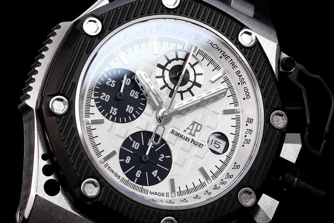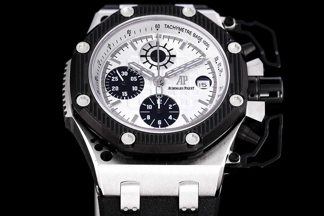 | Audemars Piguet Royale Oak Offshore Survivor 42mm White Dial Black Ceramic Steel Bezel Black Rubber 26165 | |