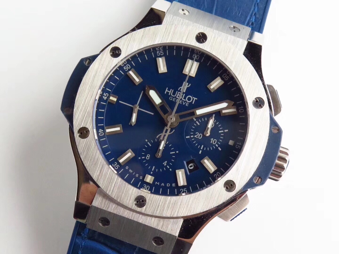 | Hublot Big Bang Black 44mm Blue Dial Steel Bezel Blue Leather Strap 301.SX.7170.LR | |