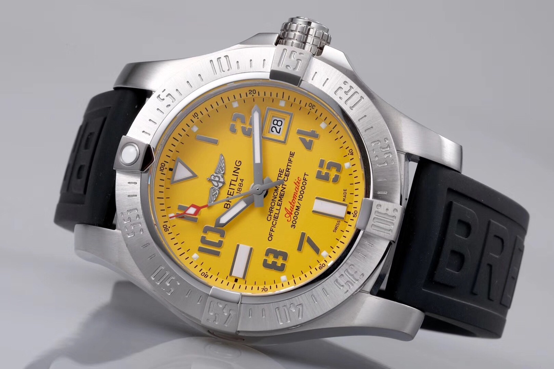 | Breitling Avenger SeaWolf 45mm Yellow Dial Steel Bezel Black Rubber Strap A17331101I1S120DSA.2 | |