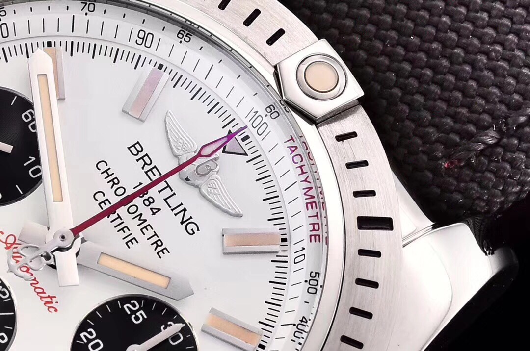 | Breitling Chronomat 44mm White Dial Steel Bezel Black Fabric Strap AB01154G.G786.101W.A20D.1 Ace Pilot | |