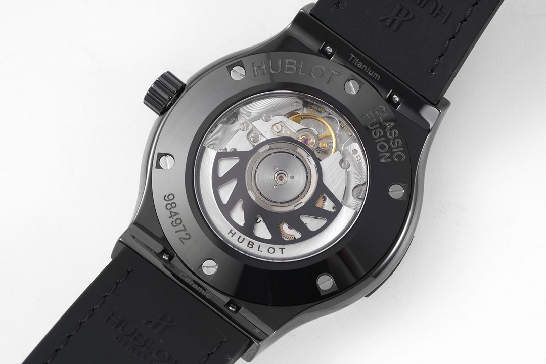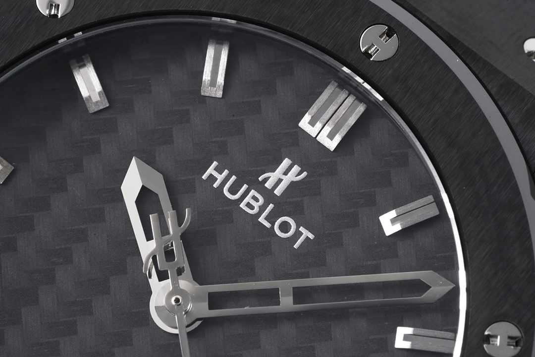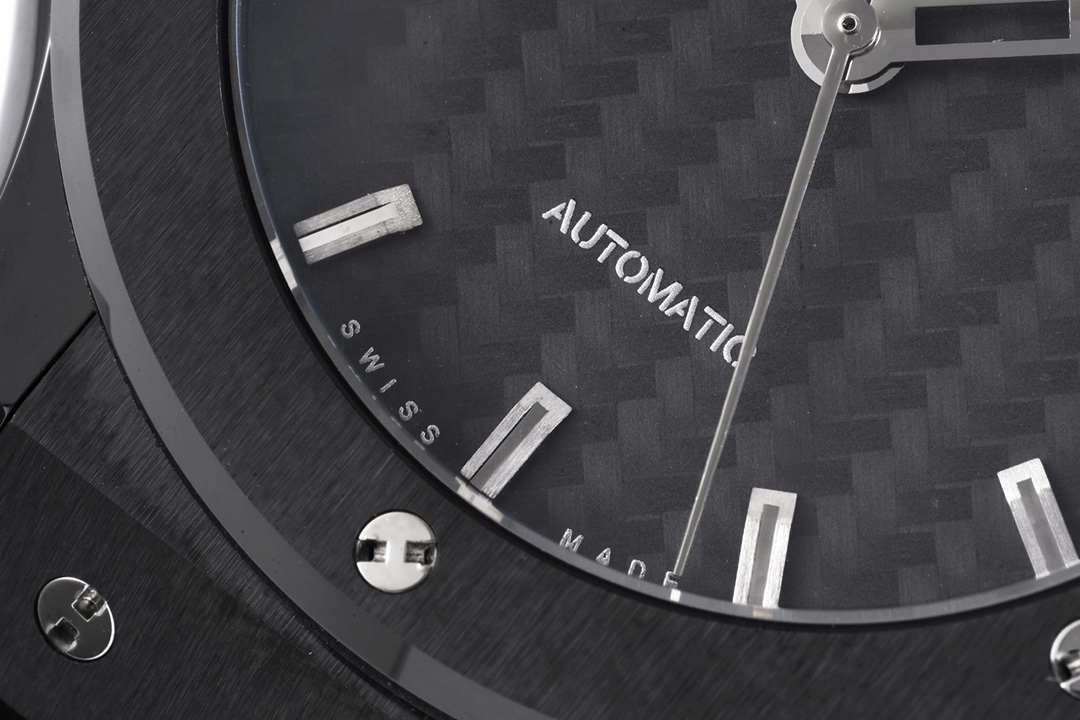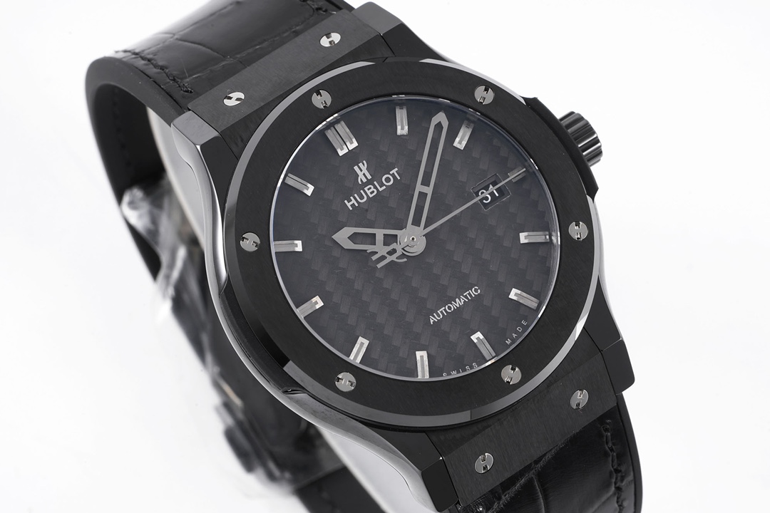| Hublot Classic Fusion 42mm Black Carbon Fiber Dial Black Ceramics Bezel Black Crocodile Skin Strap 541.CM.1771.LR | |