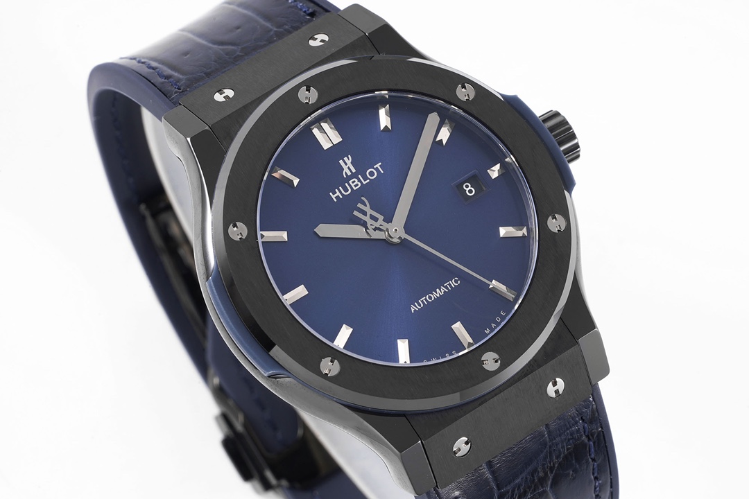 | Hublot Classic Fusion 42mm Blue Dial Black Ceramics Bezel Blue Crocodile Skin Strap 542.CM.7170.LR | |