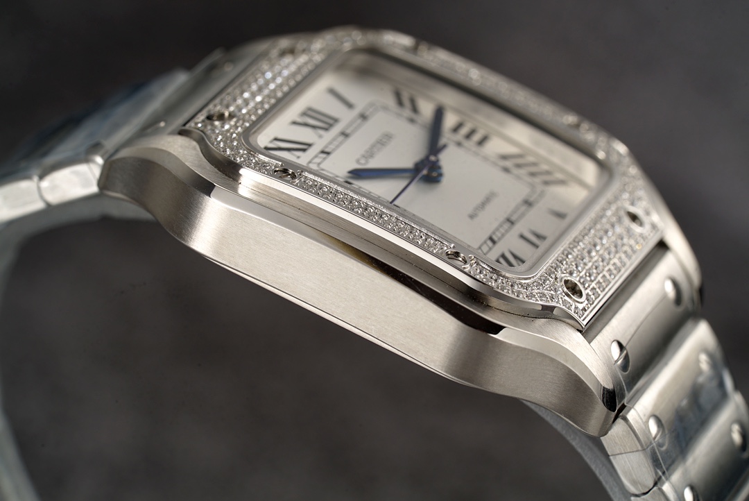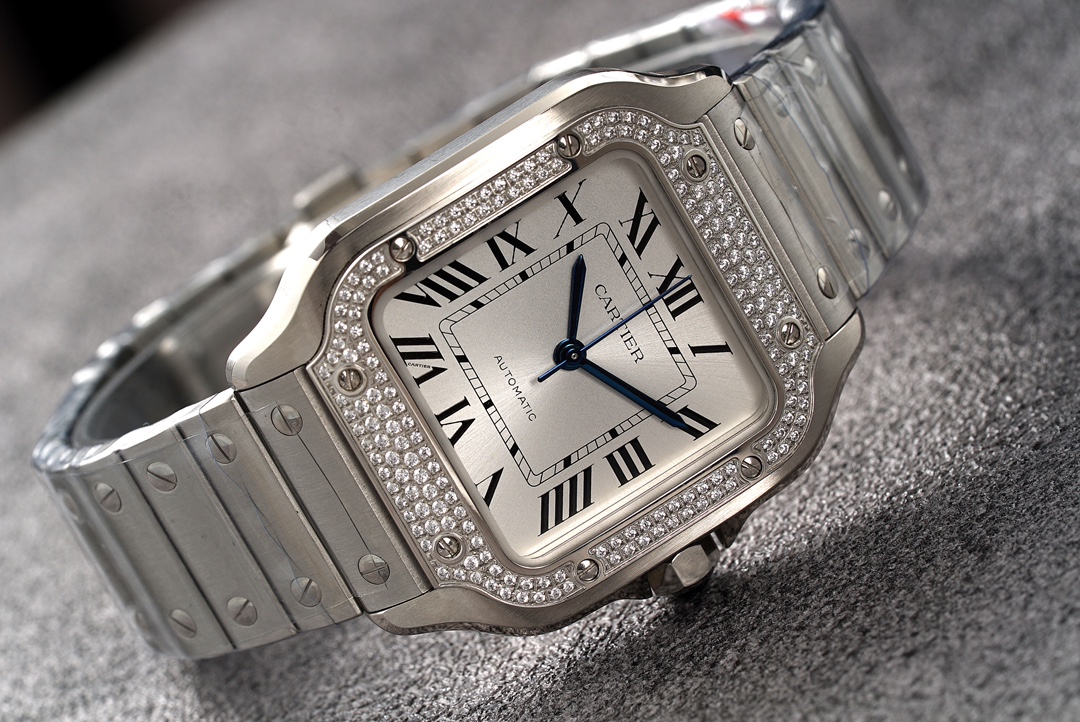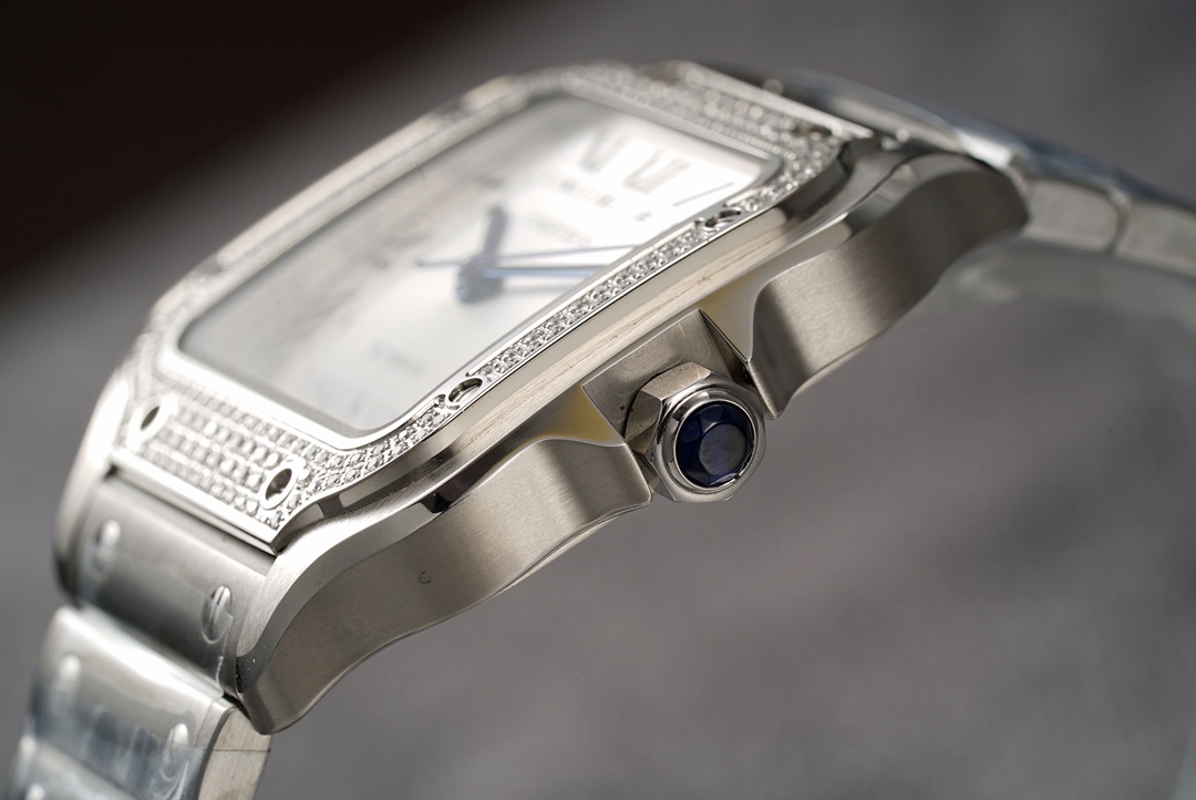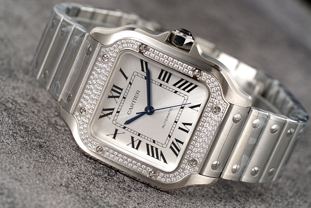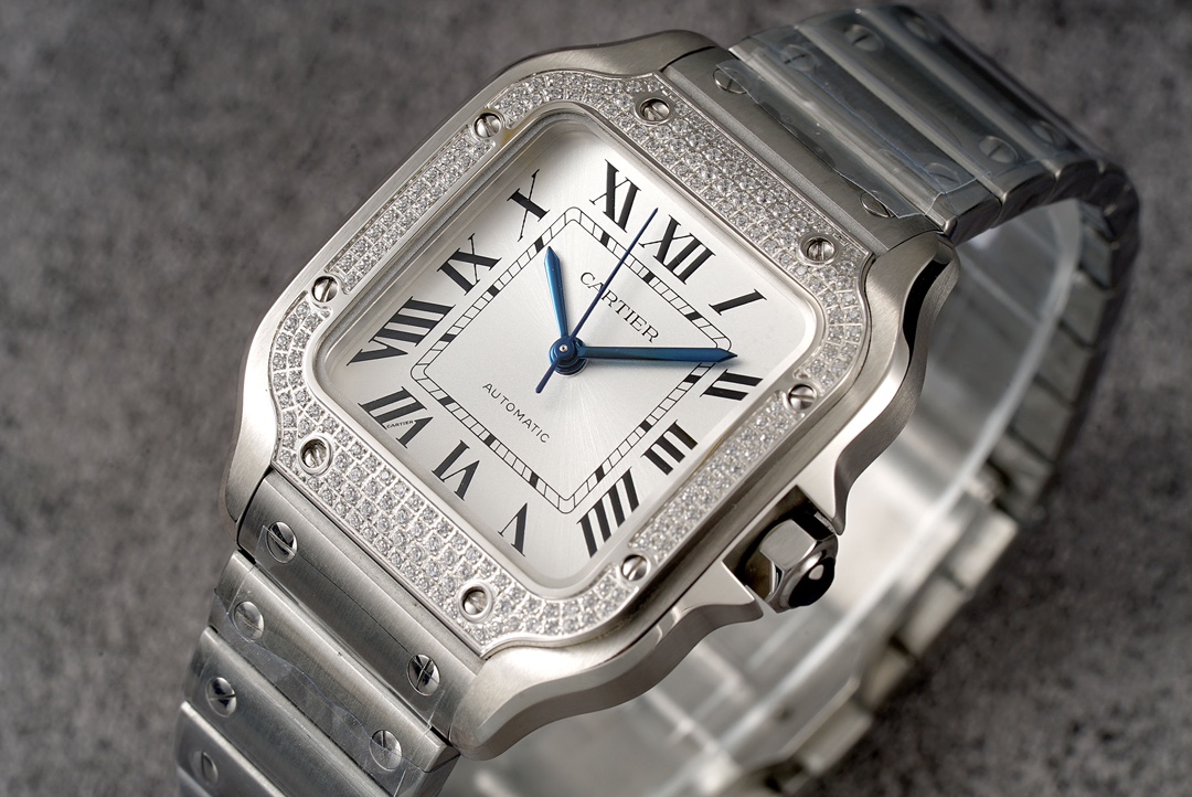 | Cartier Santos 35.1mm White Dial Diamond Steel Bezel Strap Roman Numerals W4SA0005 Ladies | |