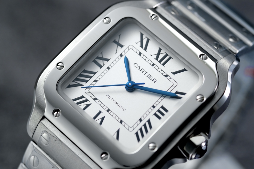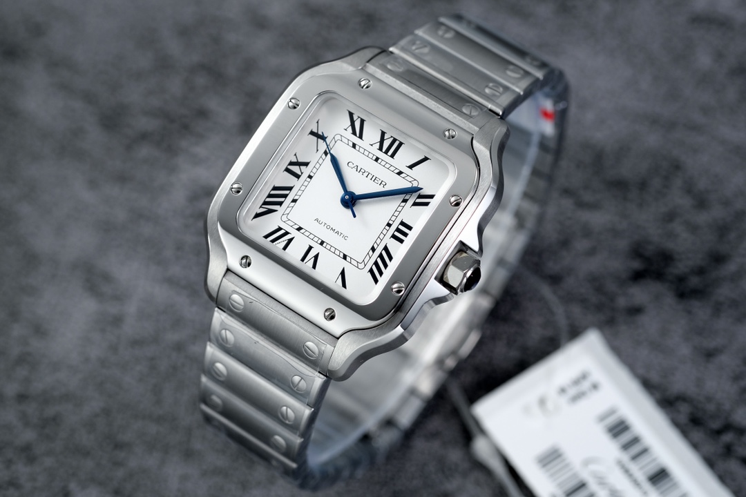 | Cartier Santos 35.1mm White Dial Steel Bezel Strap Roman Numerals WSSA0029 Ladies | |