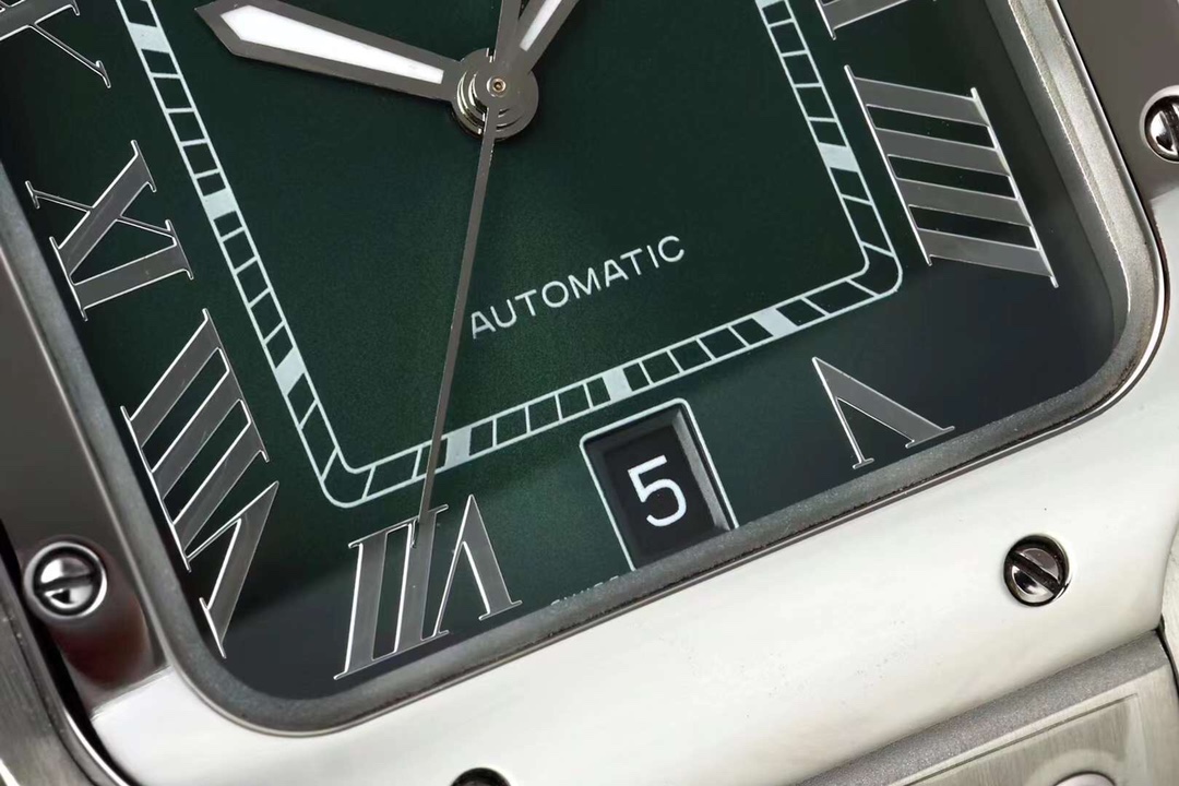 | Cartier Santos 39.8mm Green Black Dial Steel Bezel Steel Strap WSSA0062 Ladies | |