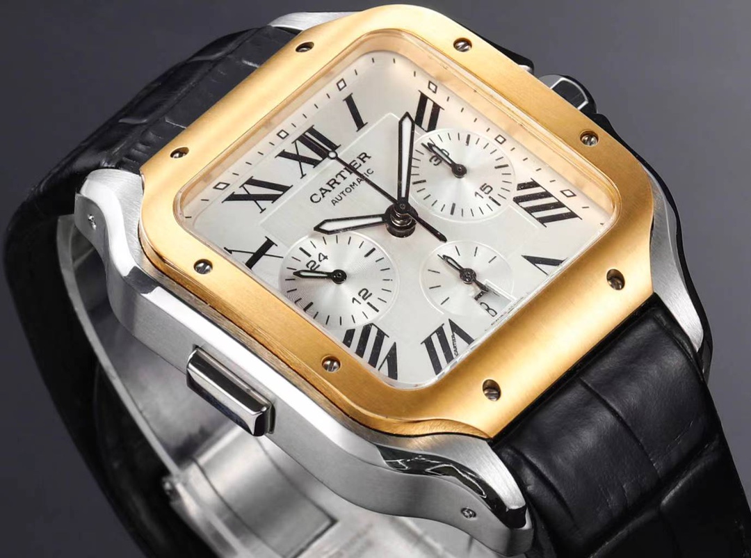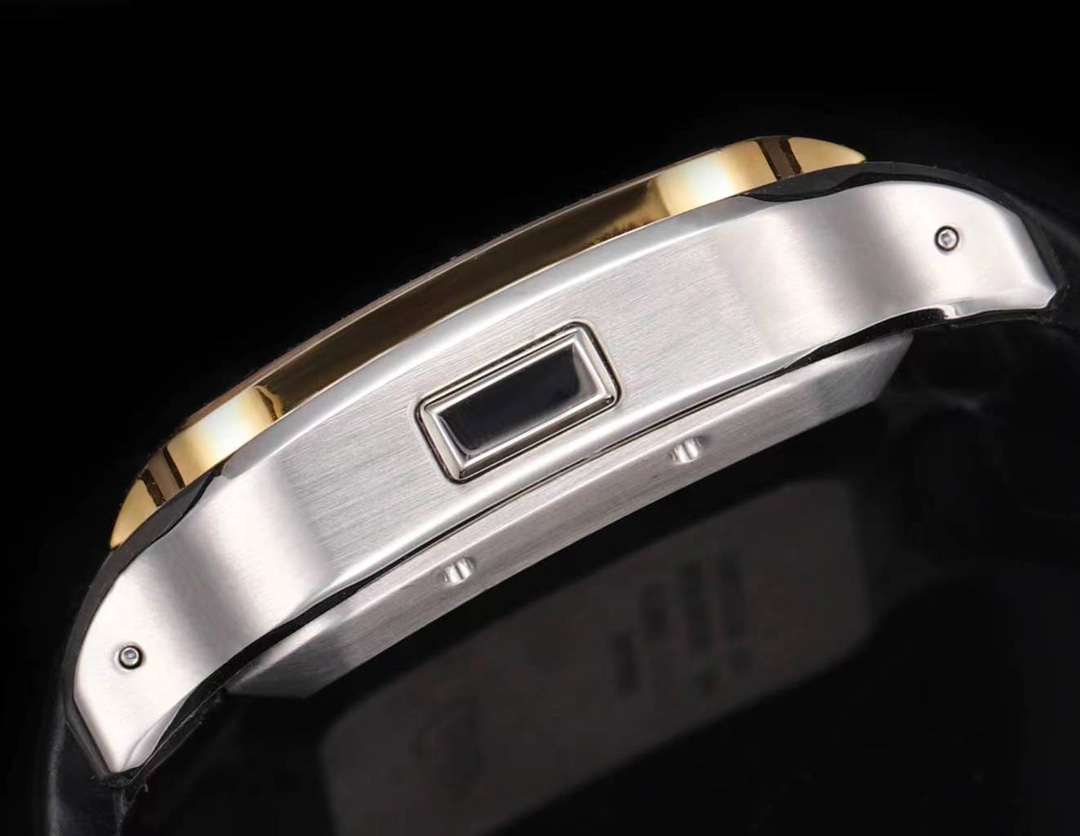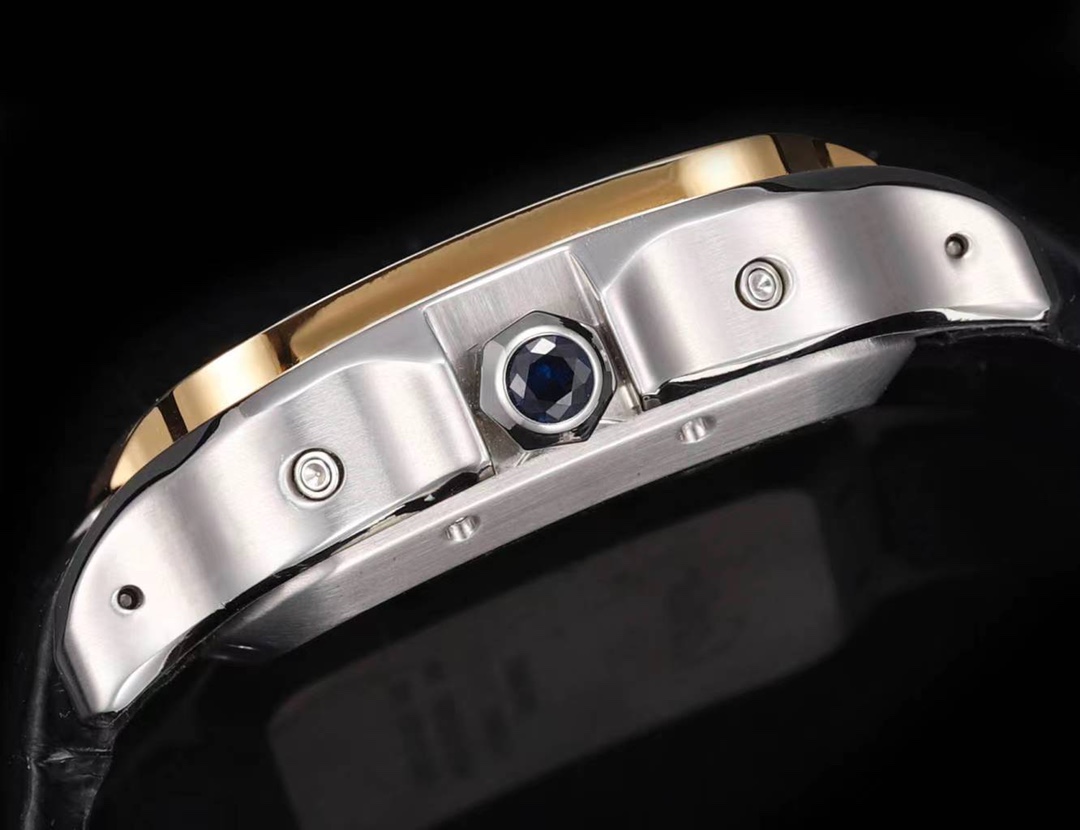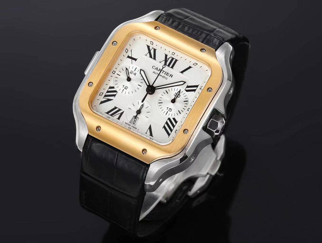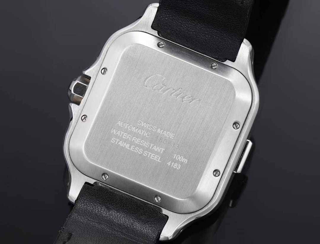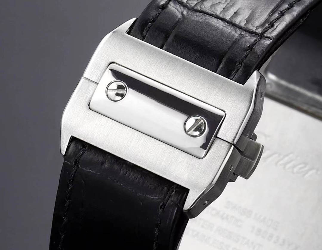 | Cartier Santos 43.3mm White Dial Steel Rose Gold Bezel Black Leather Strap WSSA1017 | |