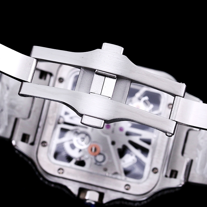 Cartier Santos Diamond 39.8mm Gold Button Blue Pointer
