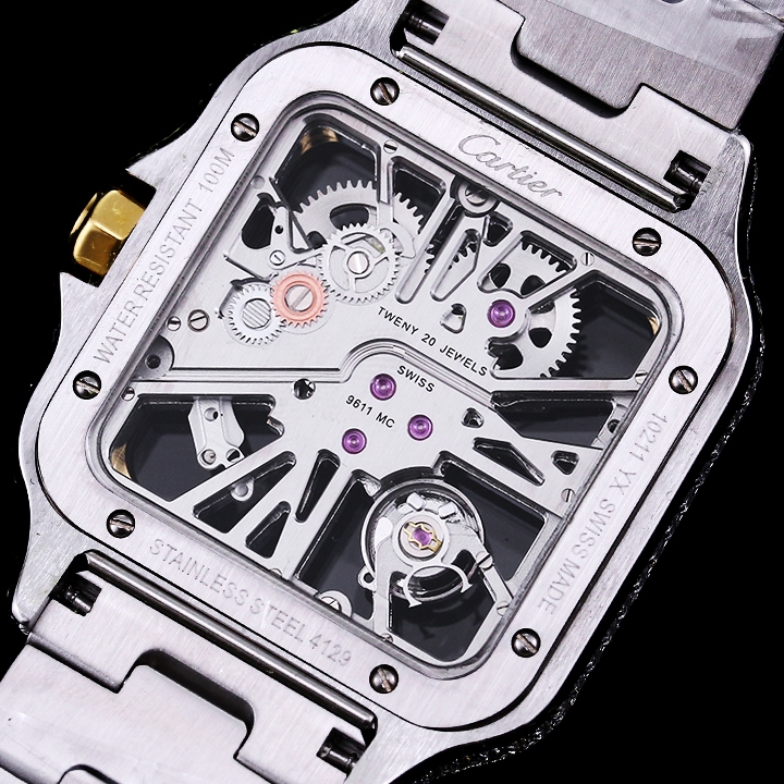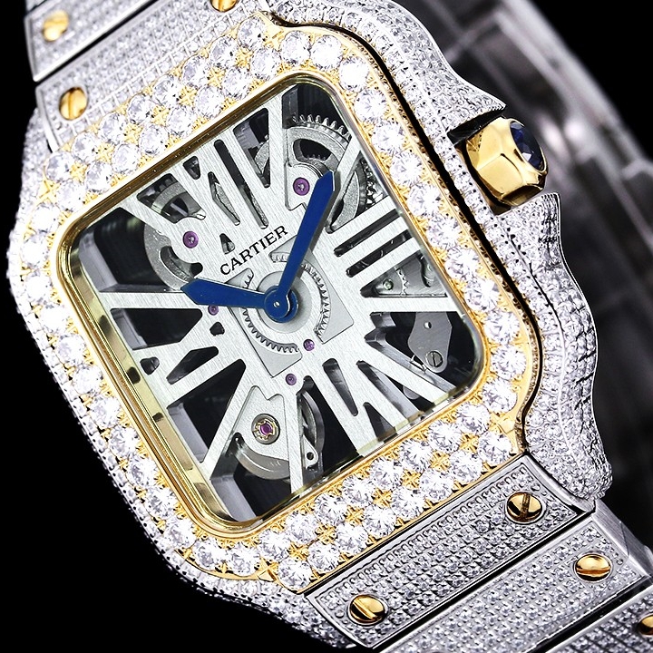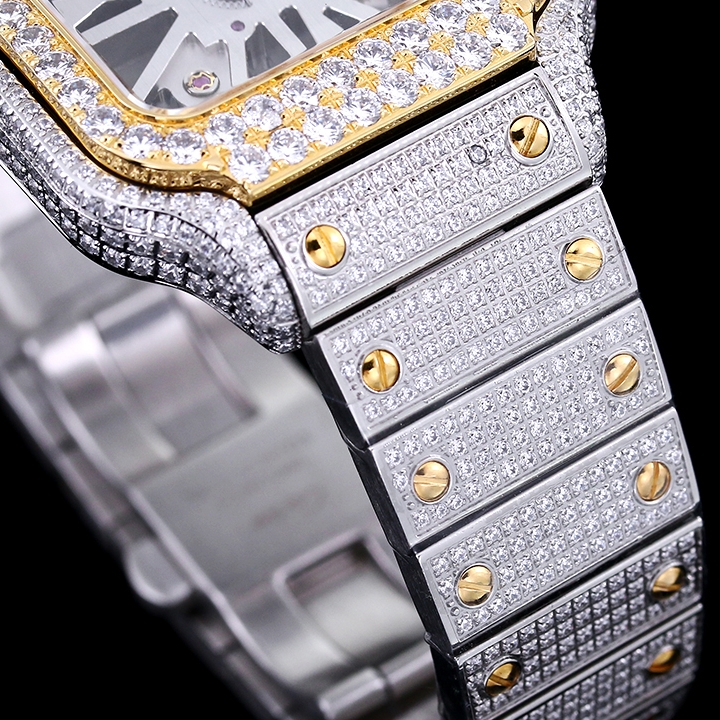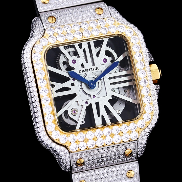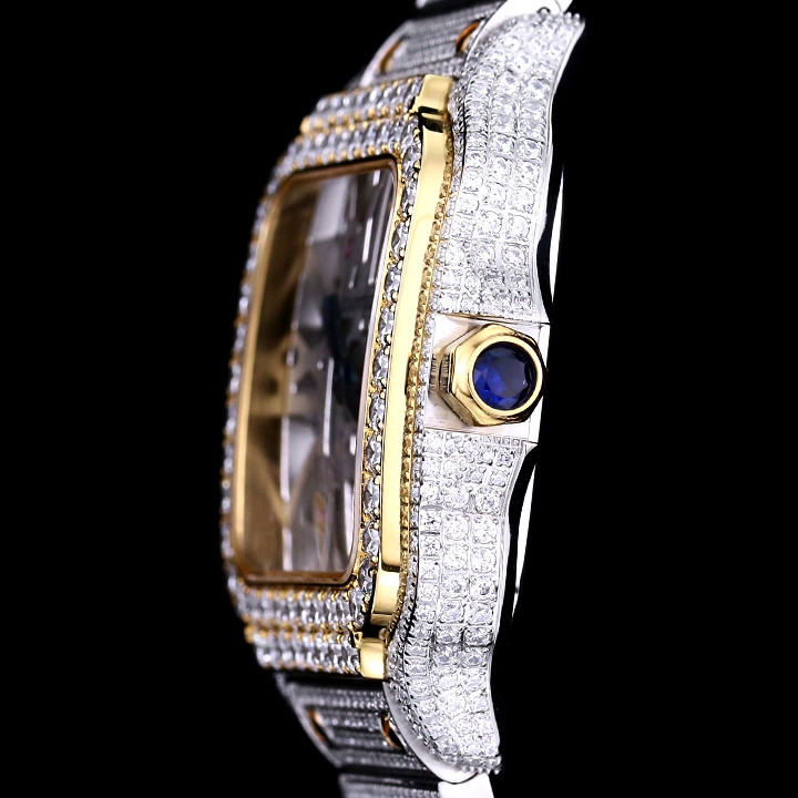 • Cartier Santos Diamond 39.8mm Gold Button Blue Pointer