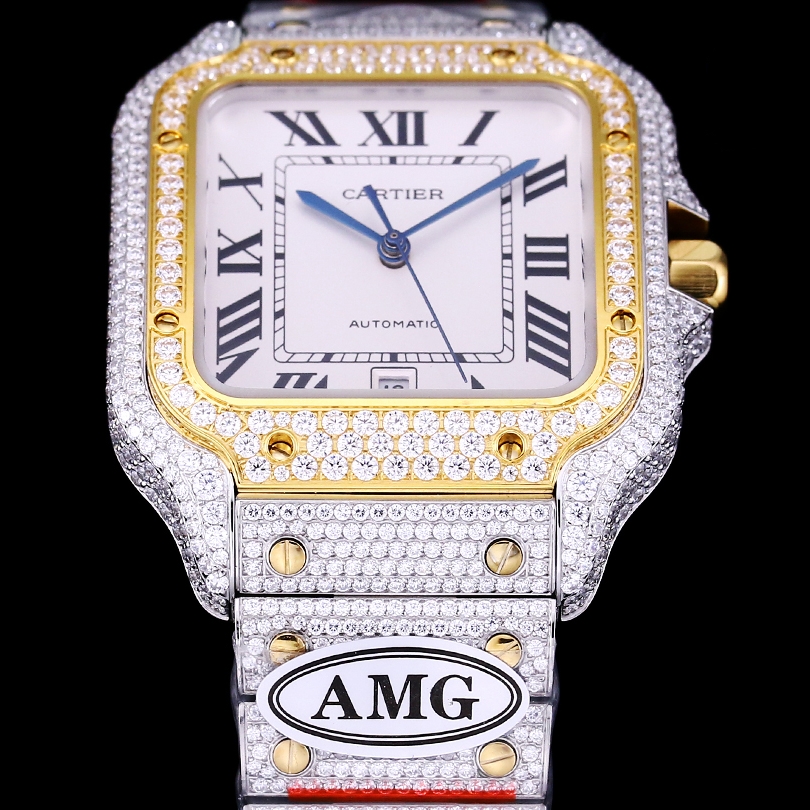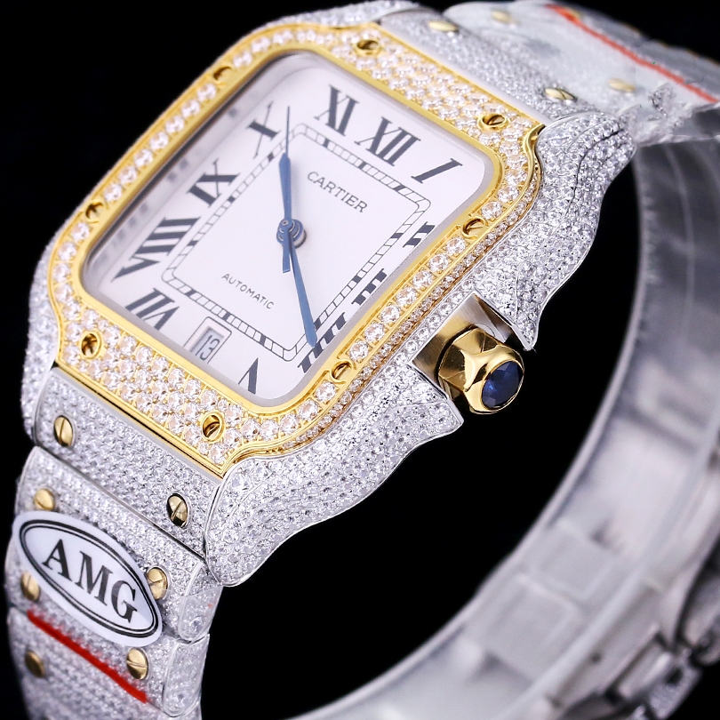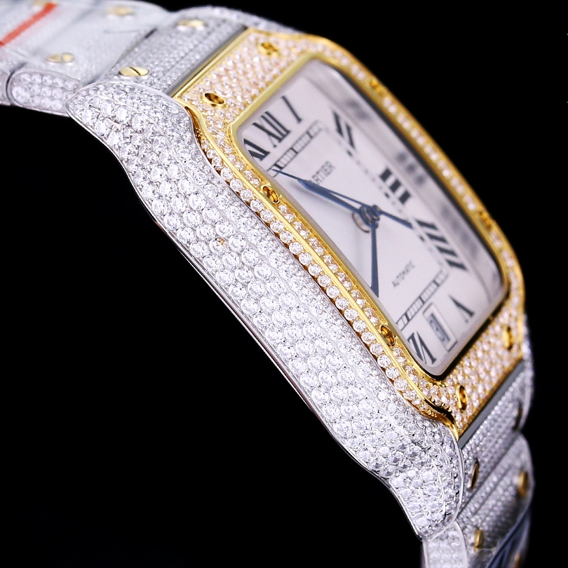Cartier Santos Full Diamond 40mm 9015 movement White dial Gold