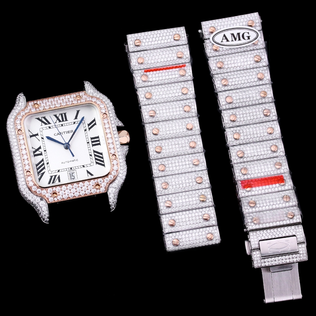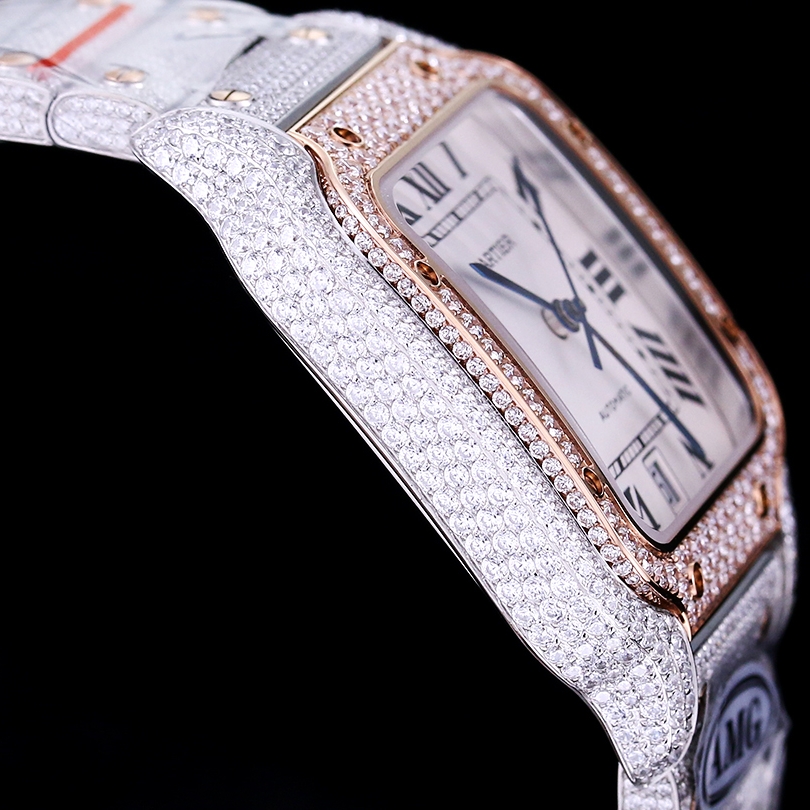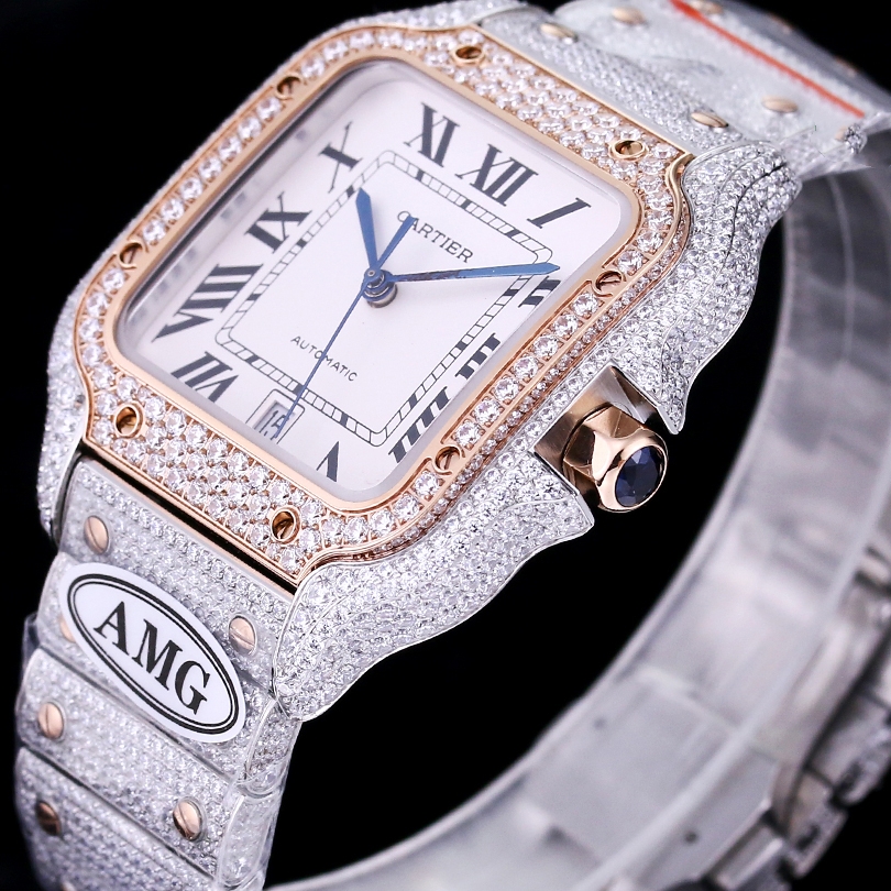 Cartier Santos Full Diamond 40mm 9015 movement White dial Rose Gold