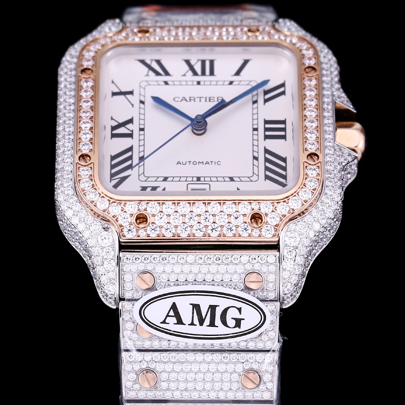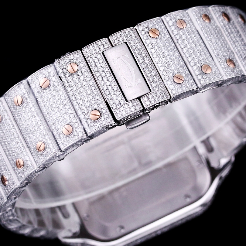 • Cartier Santos Full Diamond 40mm 9015 movement White dial Rose Gold