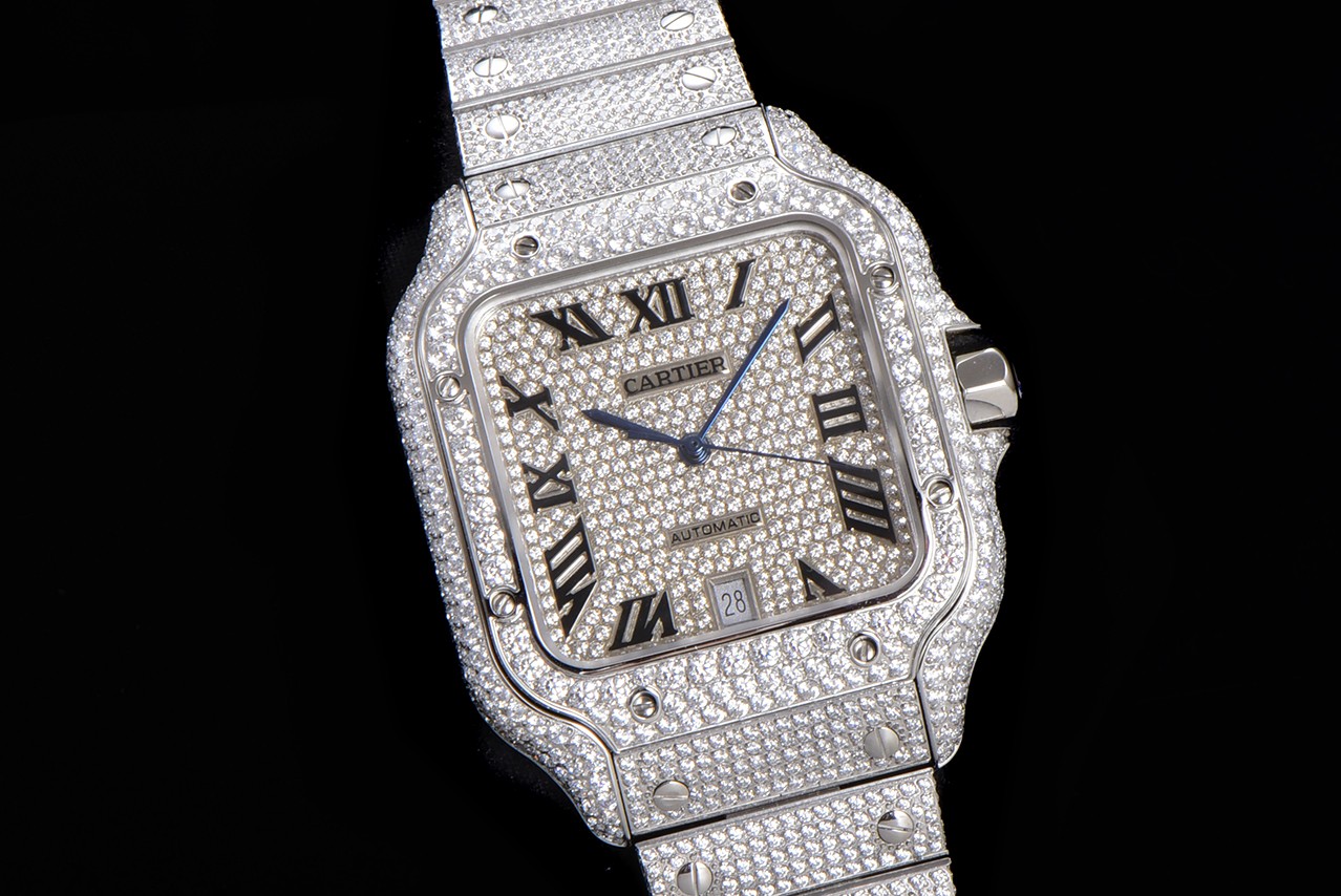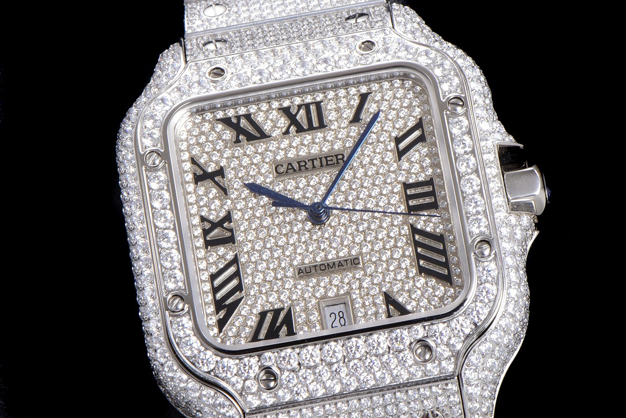 • Cartier Santos Full Diamond 40mm Dial 9015 movement White Platinum