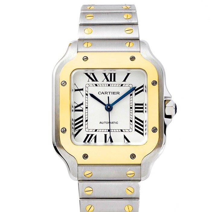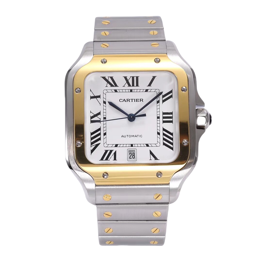Cartier Santos 39.8mm White Dial Yellow Gold & Steel Bezel Strap Roman Numerals W2SA0009