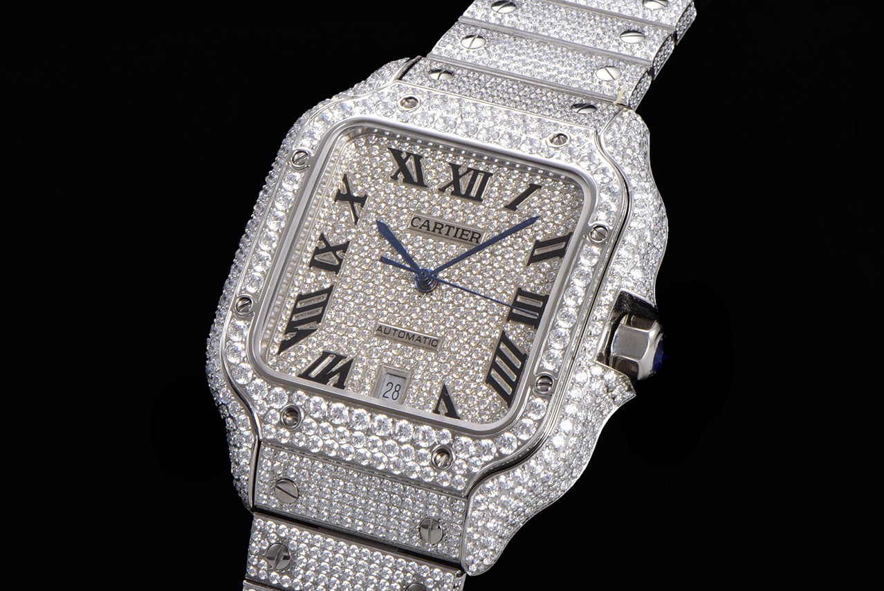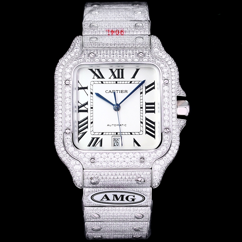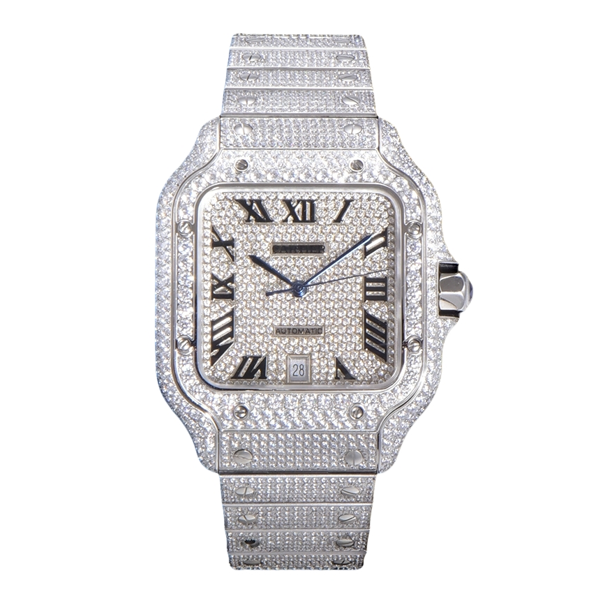 Cartier Santos Full Diamond 40mm Dial 9015 movement White Platinum