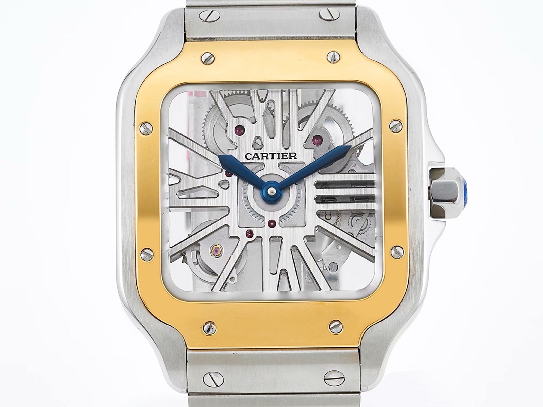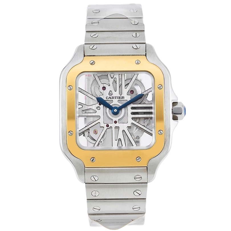 Cartier Santos 39.8mm Hollow Dial Yellow Gold & Steel Bezel Strap WHSA0012