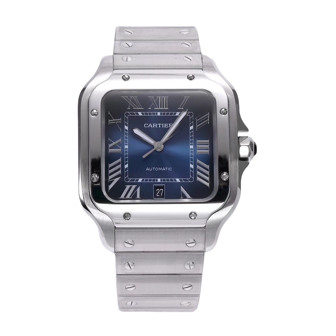 Cartier Santos 39.8mm Blue Black Dial Steel Bezel Steel Strap WSSA0013