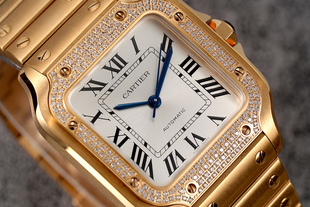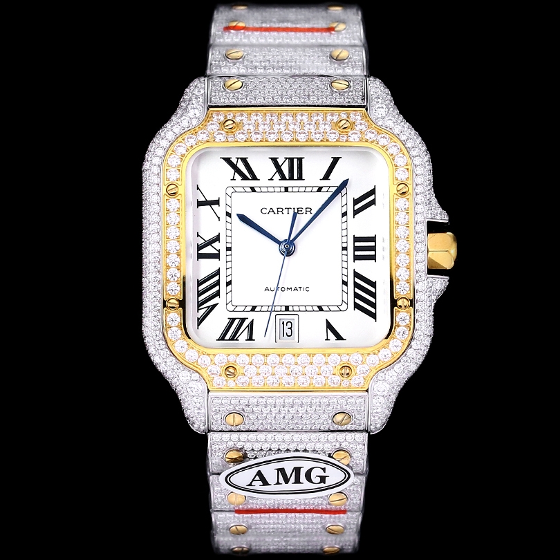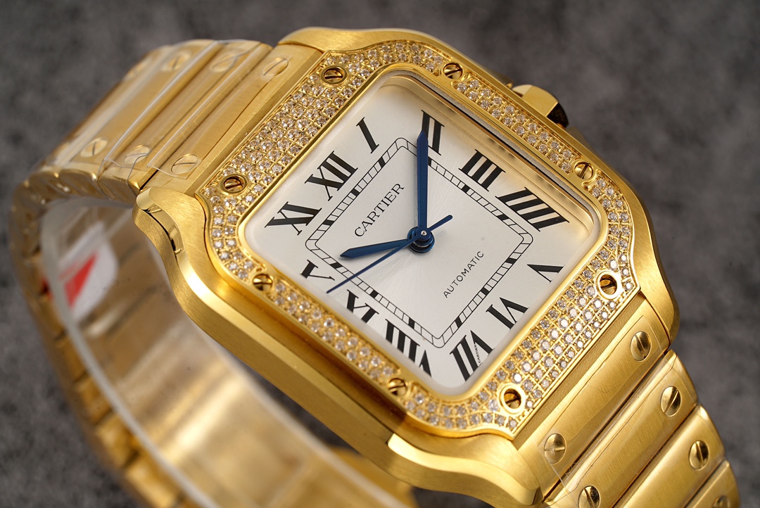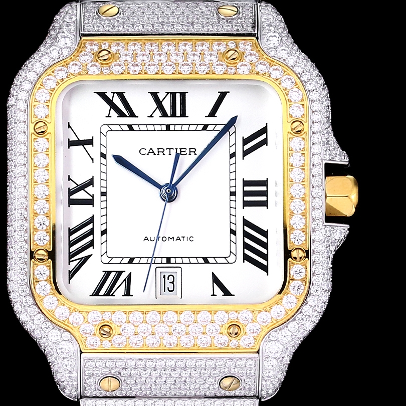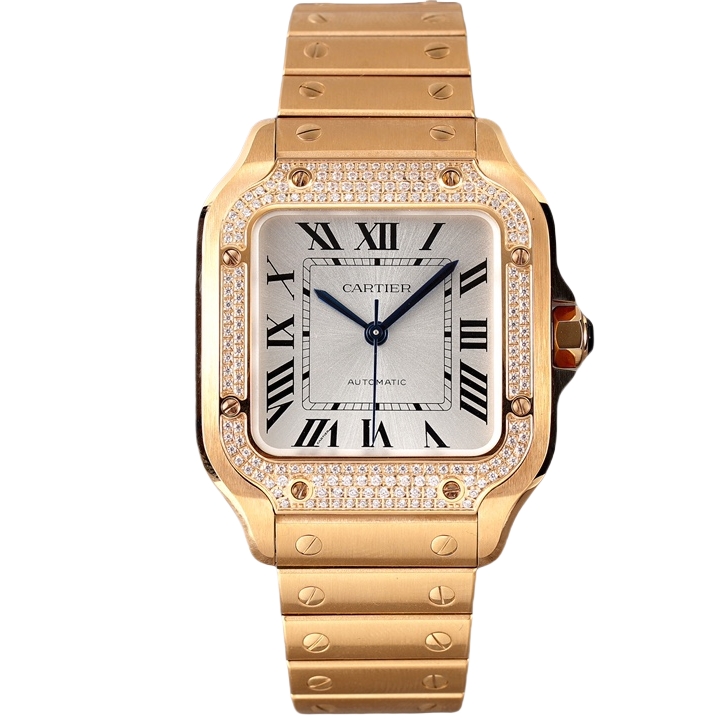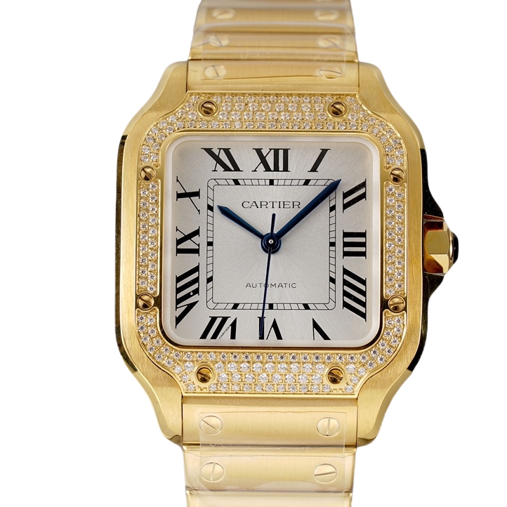 Cartier Santos Full Diamond 40mm 9015 movement White dial Gold