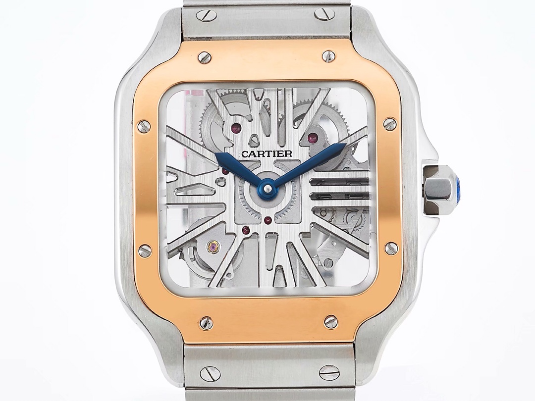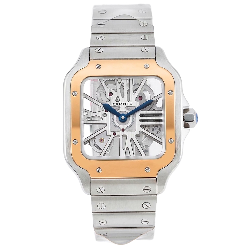 Cartier Santos 39.8mm Hollow Dial Rose Gold & Steel Bezel Strap WRSA0012