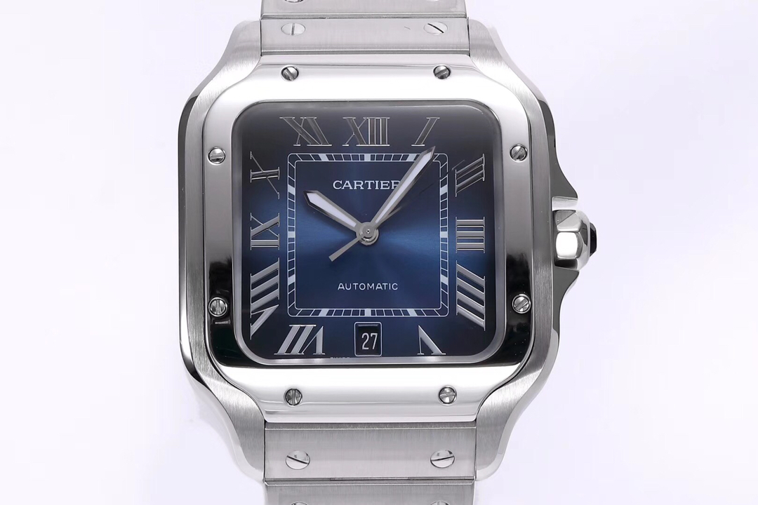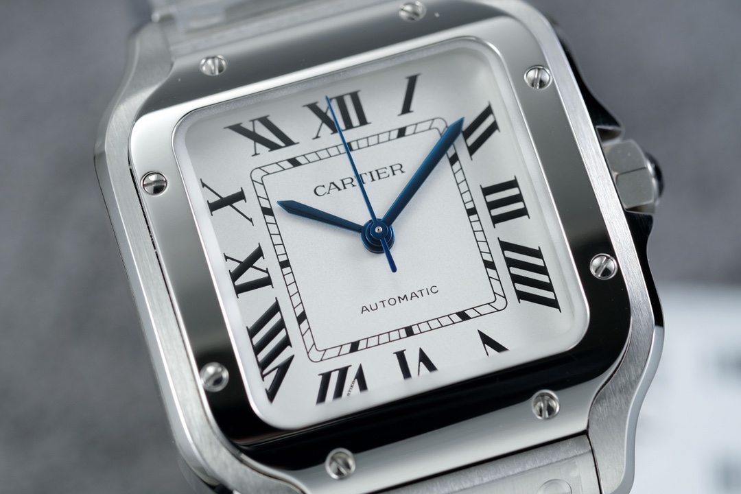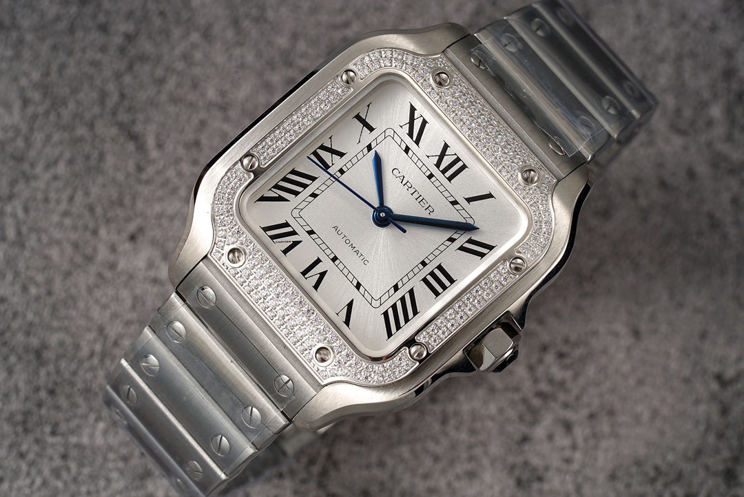 Cartier Santos Diamond 39.8mm Steel Button Blue Pointer Big Diamond plate