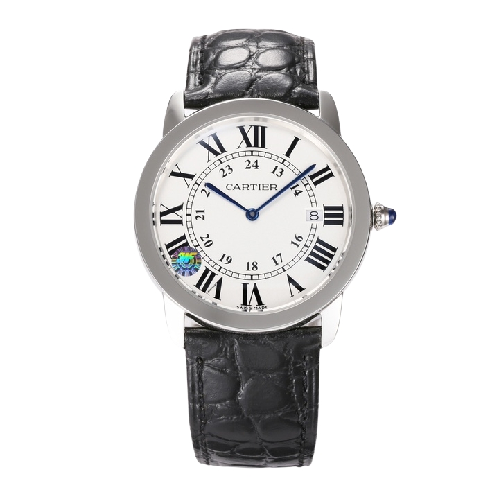 Cartier Ronde Steel 36mm 29mm White Dial Steel Bezel Black Leather Strap WSRN0013