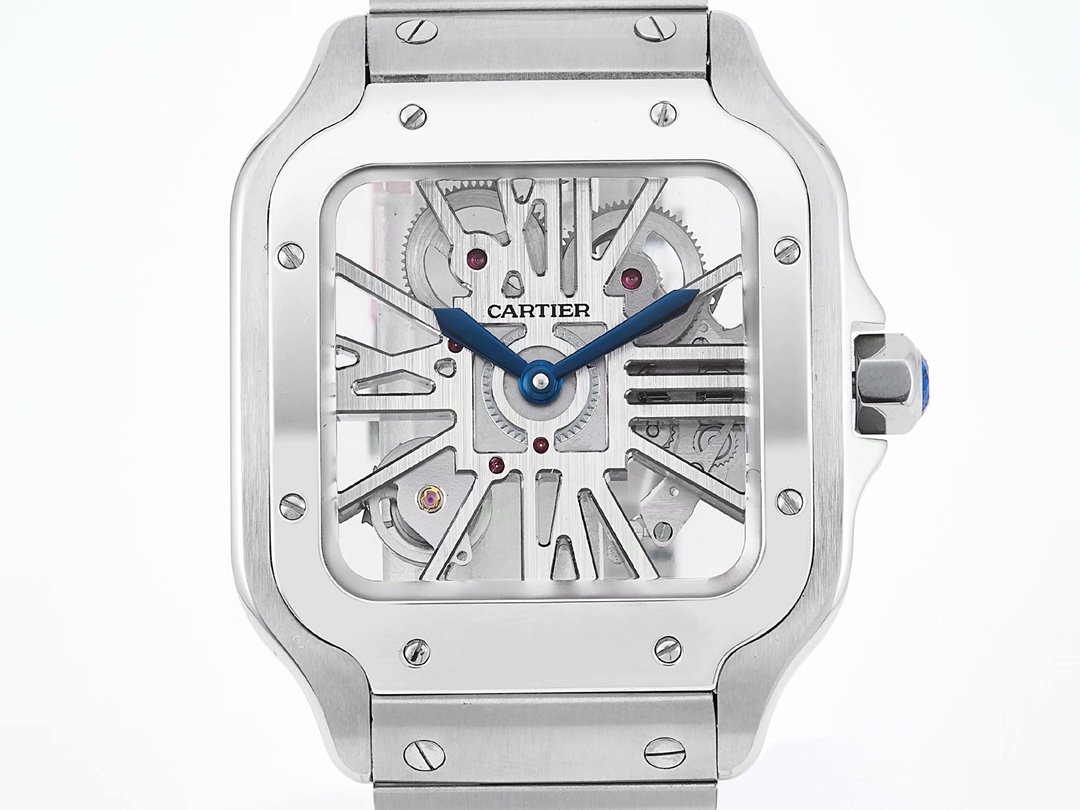 Cartier Santos 39.8mm Hollow Dial Steel Bezel Strap WHSA0015