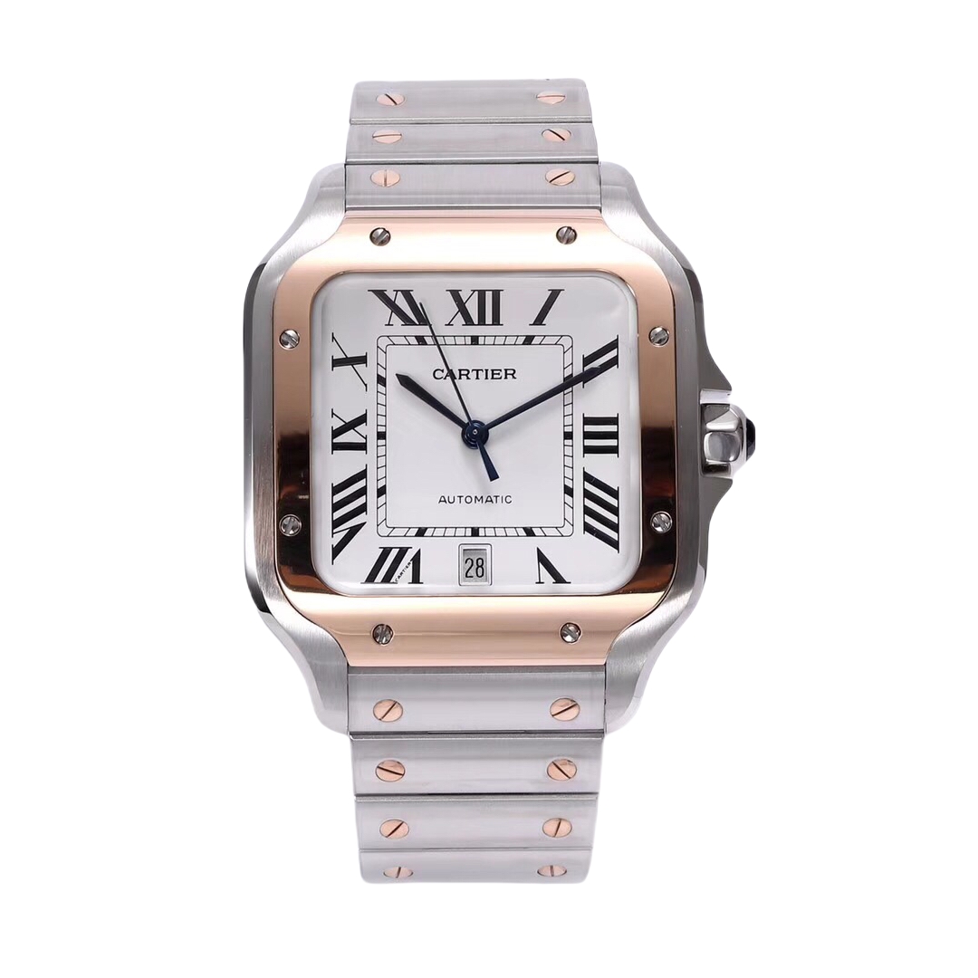 Cartier Santos 39.8mm White Dial Rose Gold & Steel Bezel Strap Roman Numerals W2SA000X