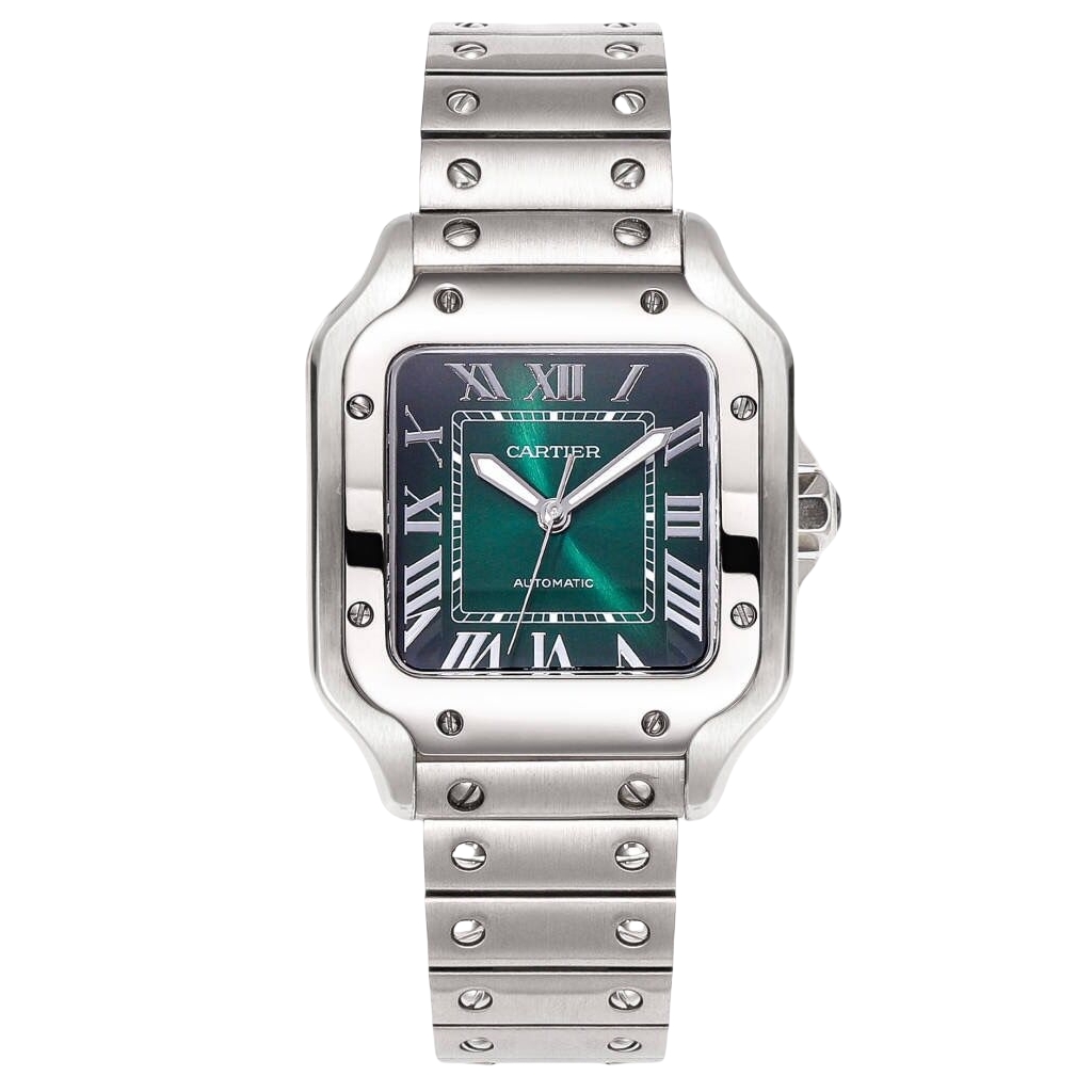 Cartier Santos 35.1mm Green Black Dial Steel Bezel Steel Strap WSSA0061 Ladies