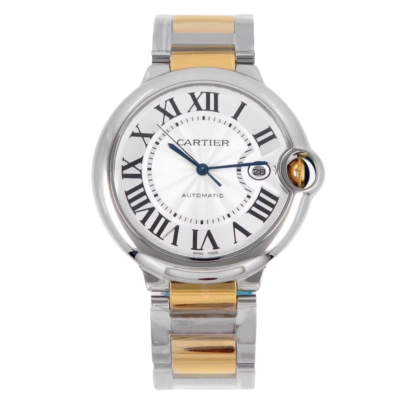 Cartier Ballon Bleu 42mm White Dial Yellow Gold Steel Bezel Strap W2BB0039