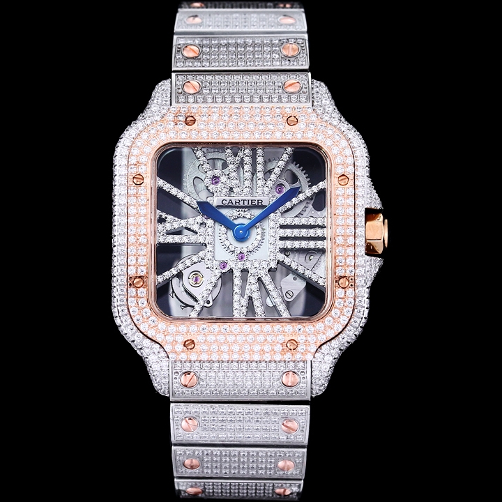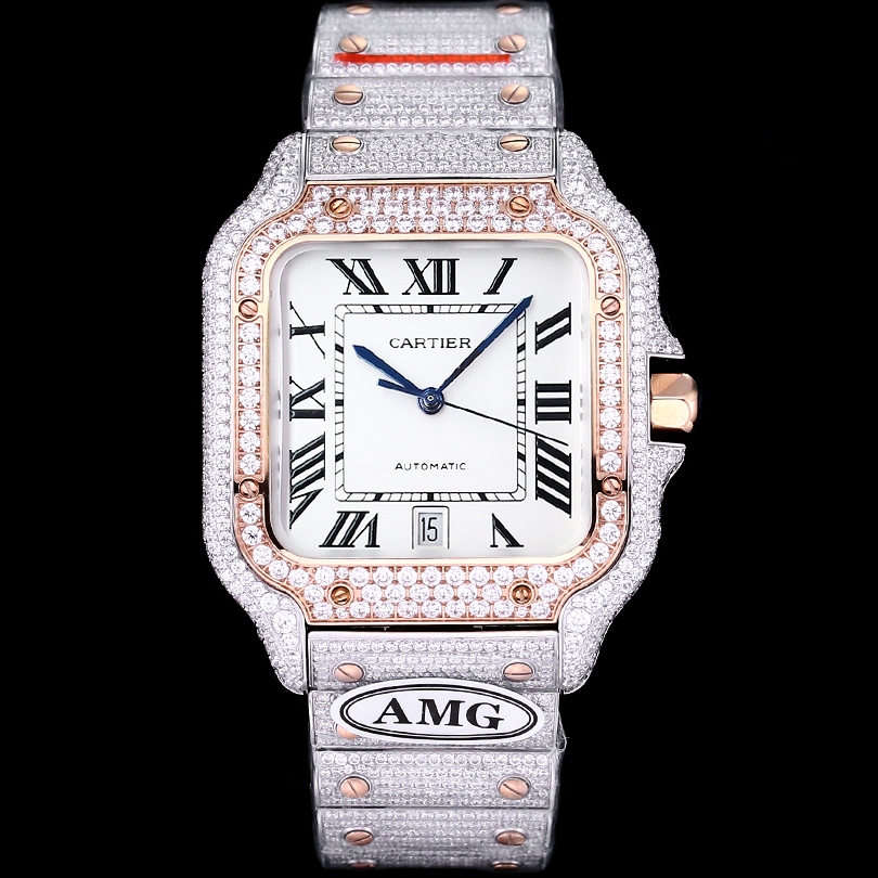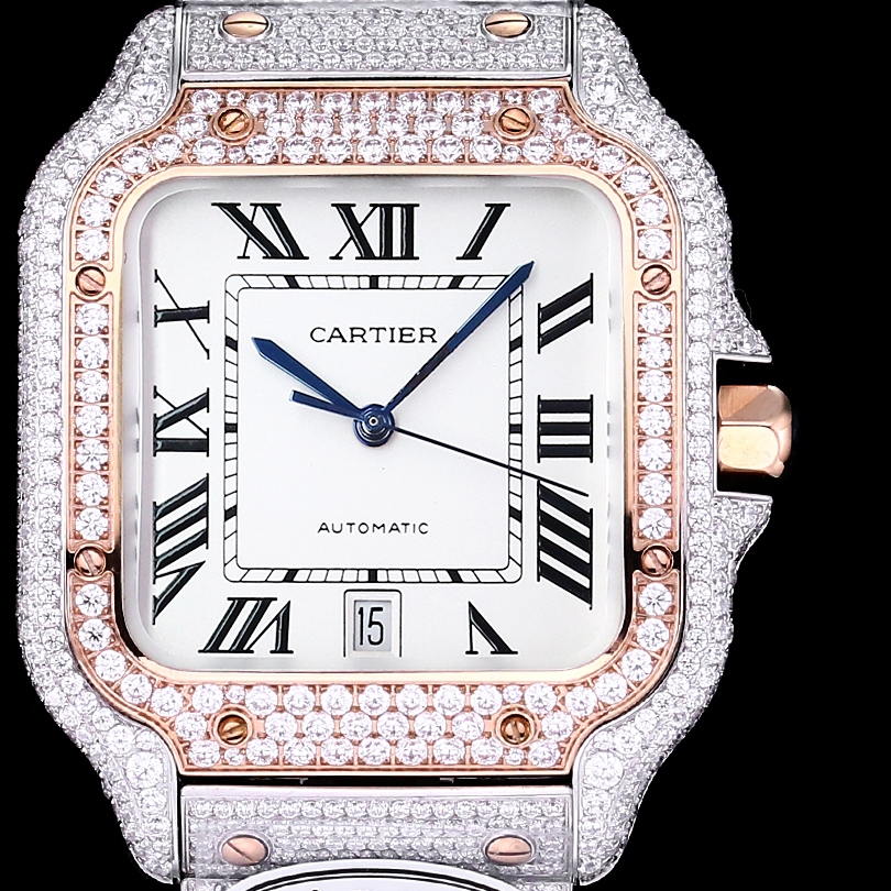 Cartier Santos Full Diamond 40mm 9015 movement White dial Rose Gold
