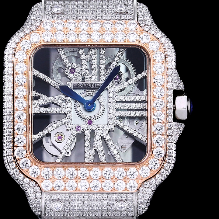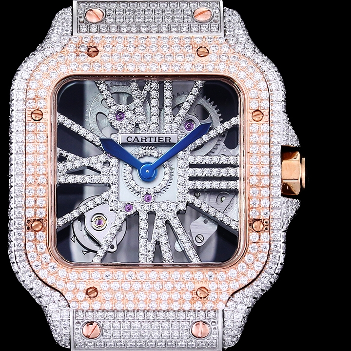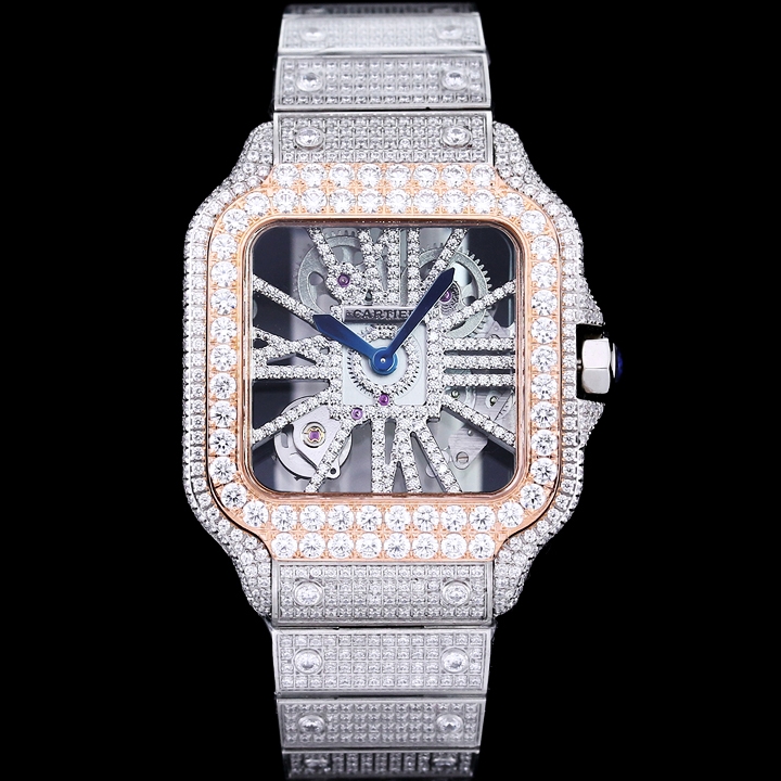 Cartier Santos Full Diamond 39.8mm Rose Gold Button Blue Pointer