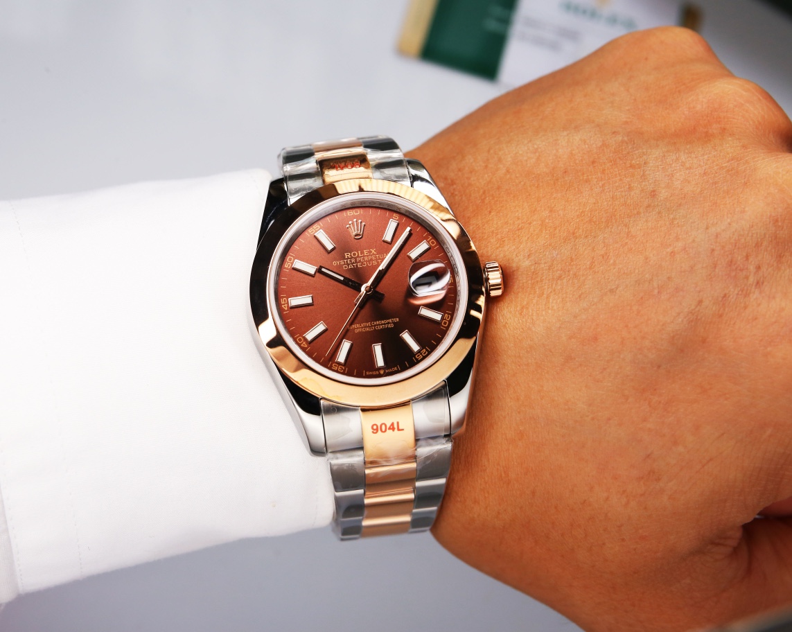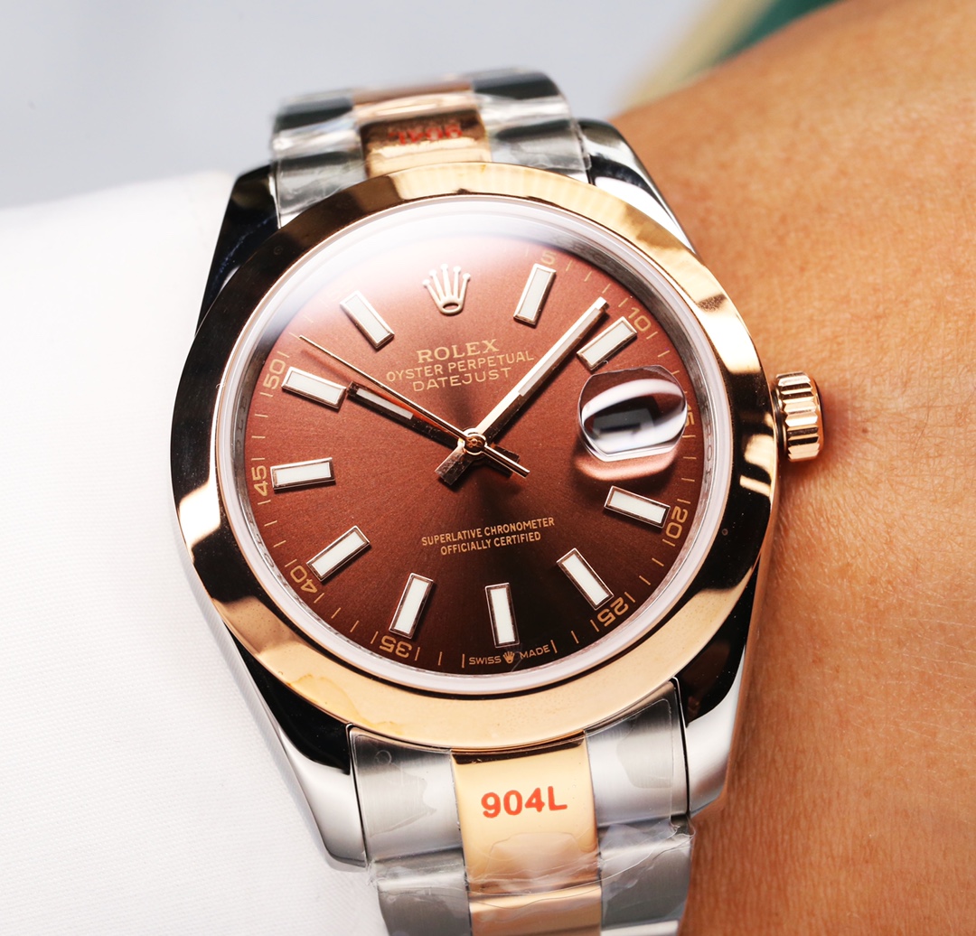 | Rolex Datejust Oyster Brown Dial 41mm Rose Gold & Steel M126338 | |