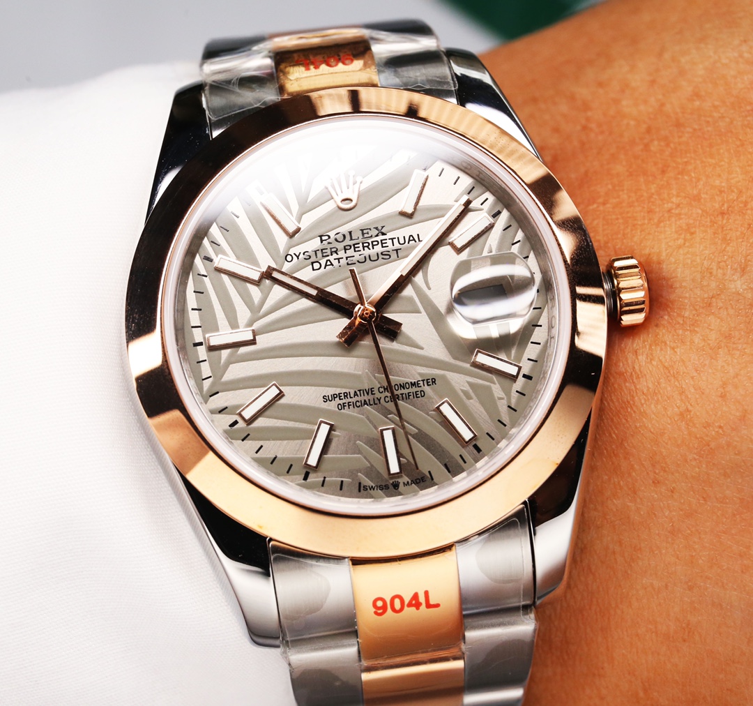 | Rolex Datejust Oyster Grey Palm Leaves Dial 41mm Rose Gold & Steel M126338 | |