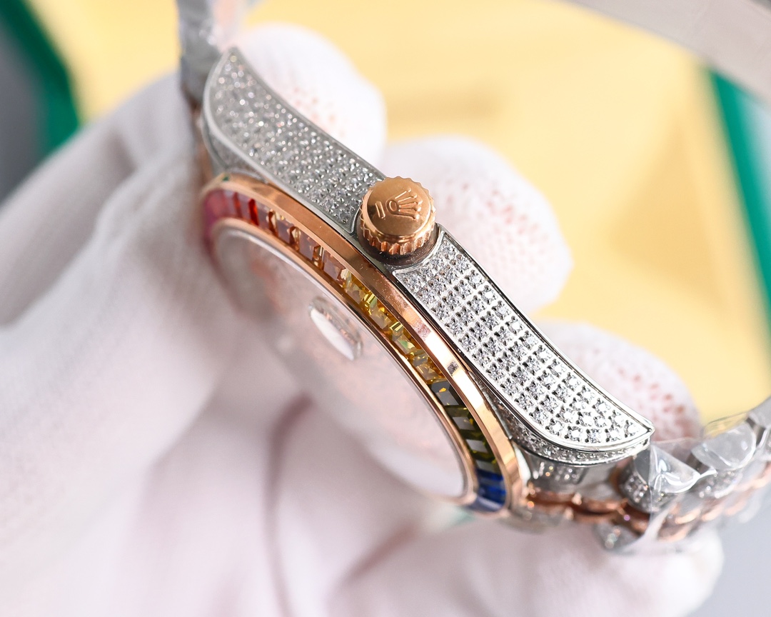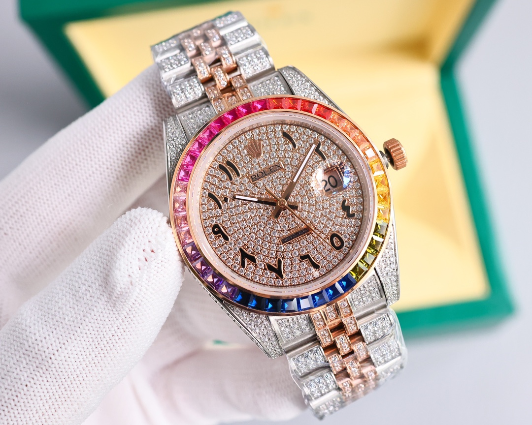 • Rolex Datejust Rainbow 41mm Dial Arabia Rose Gold Full Diamonds Deluxe