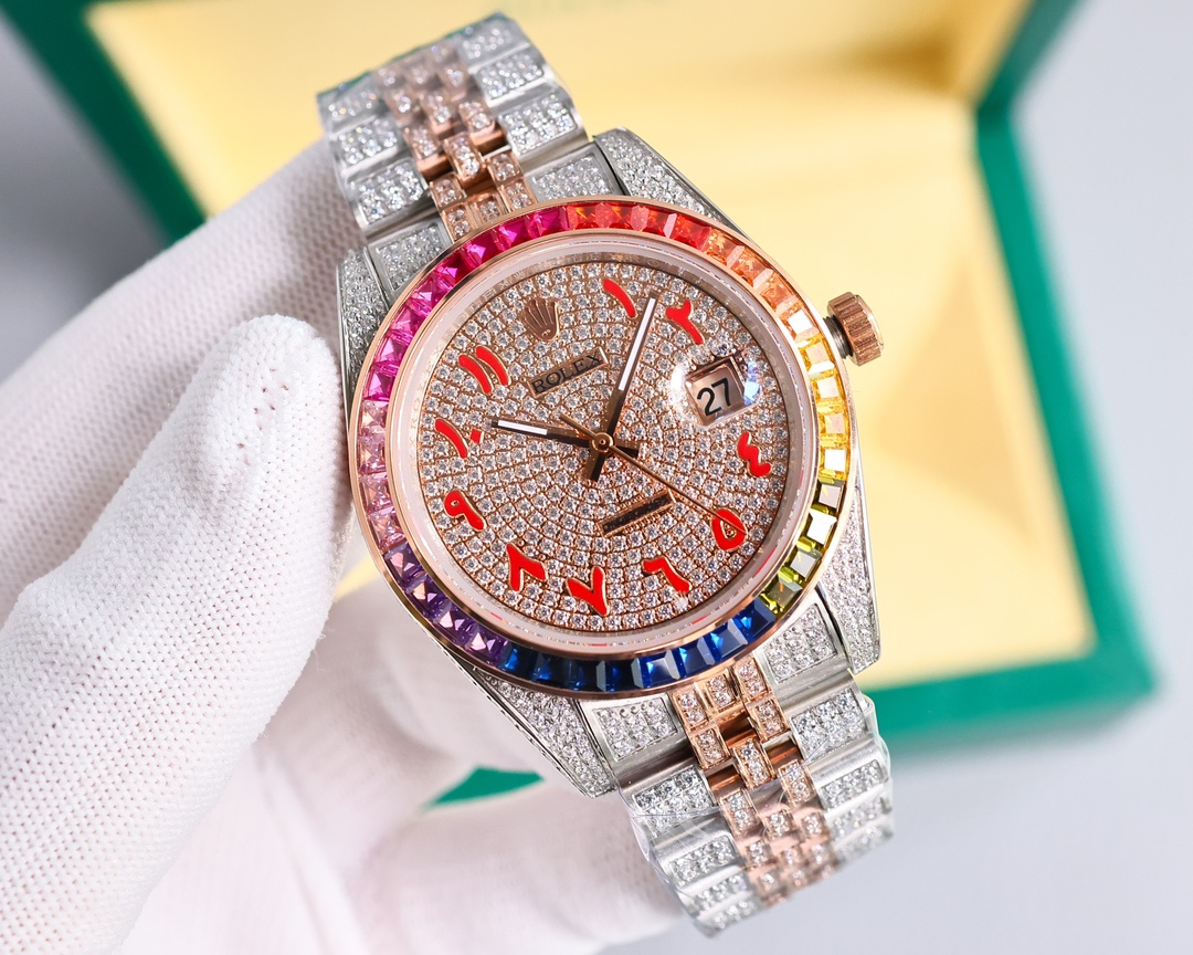 Rolex Datejust Rainbow 41mm Dial Arabia Rose Gold Full Diamonds Deluxe