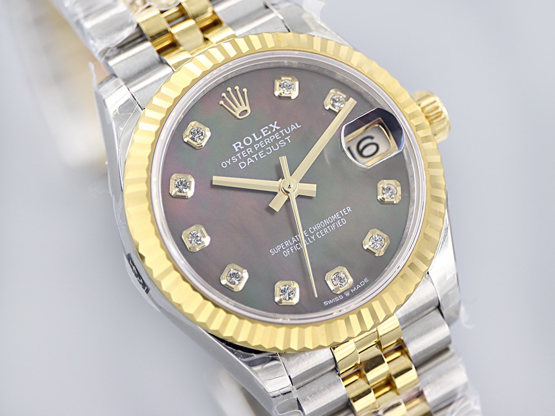 Rolex Datejust 31mm Mother-Of-Pearl Diamond Brown Dial Yellow Gold & Steel Bezel 278273-0024 Woman Ladies