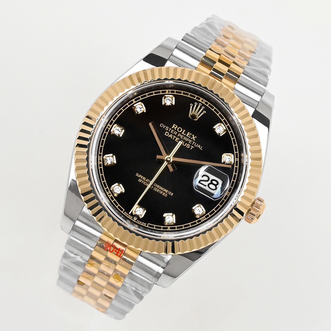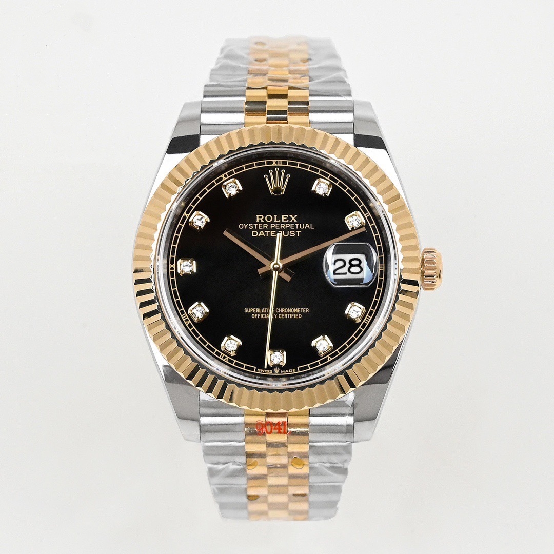 Rolex Datejust Oyster 41mm Steel & Gold Black Dial M126338 Diamond